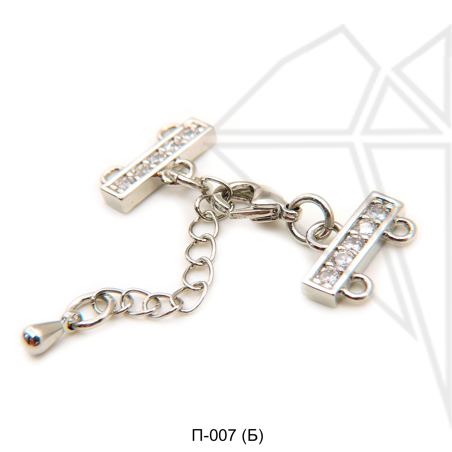 Переходник на 2 нити с родированным покрытием (по латуни) и удлинительной цепочкой.