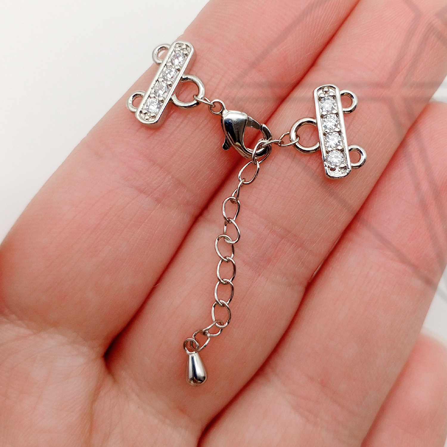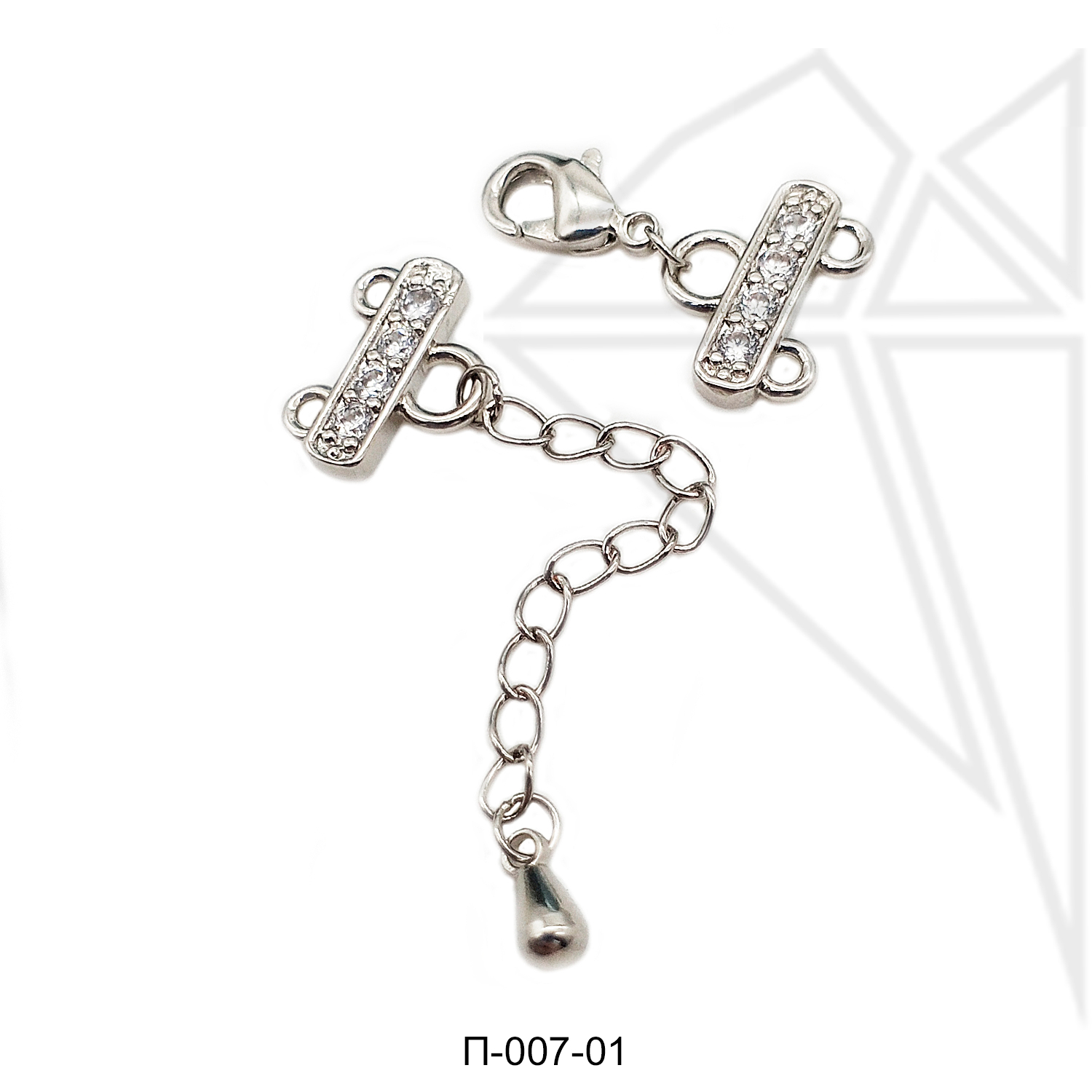 Переходник на 2 нити с родированным покрытием (по латуни) и удлинительной цепочкой.