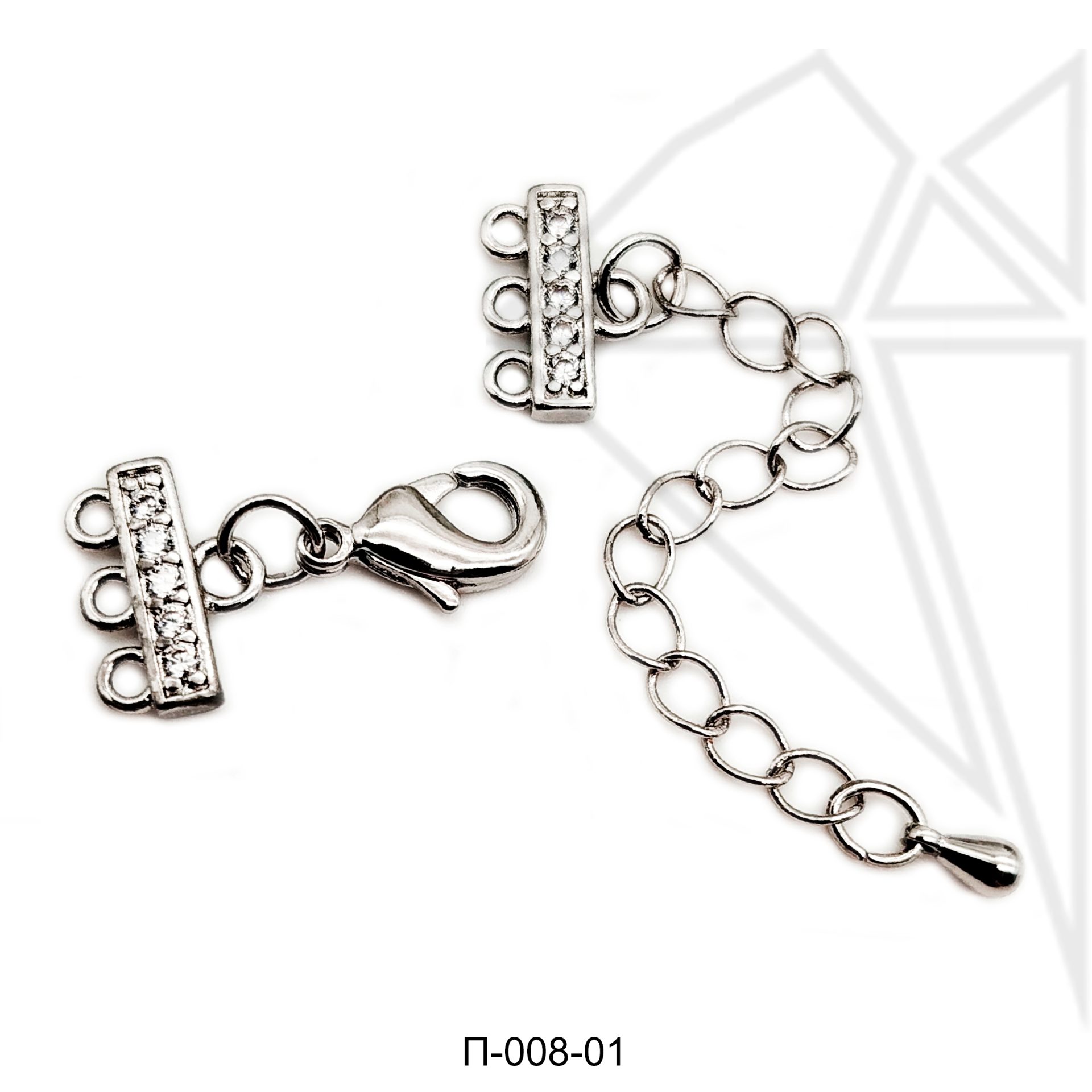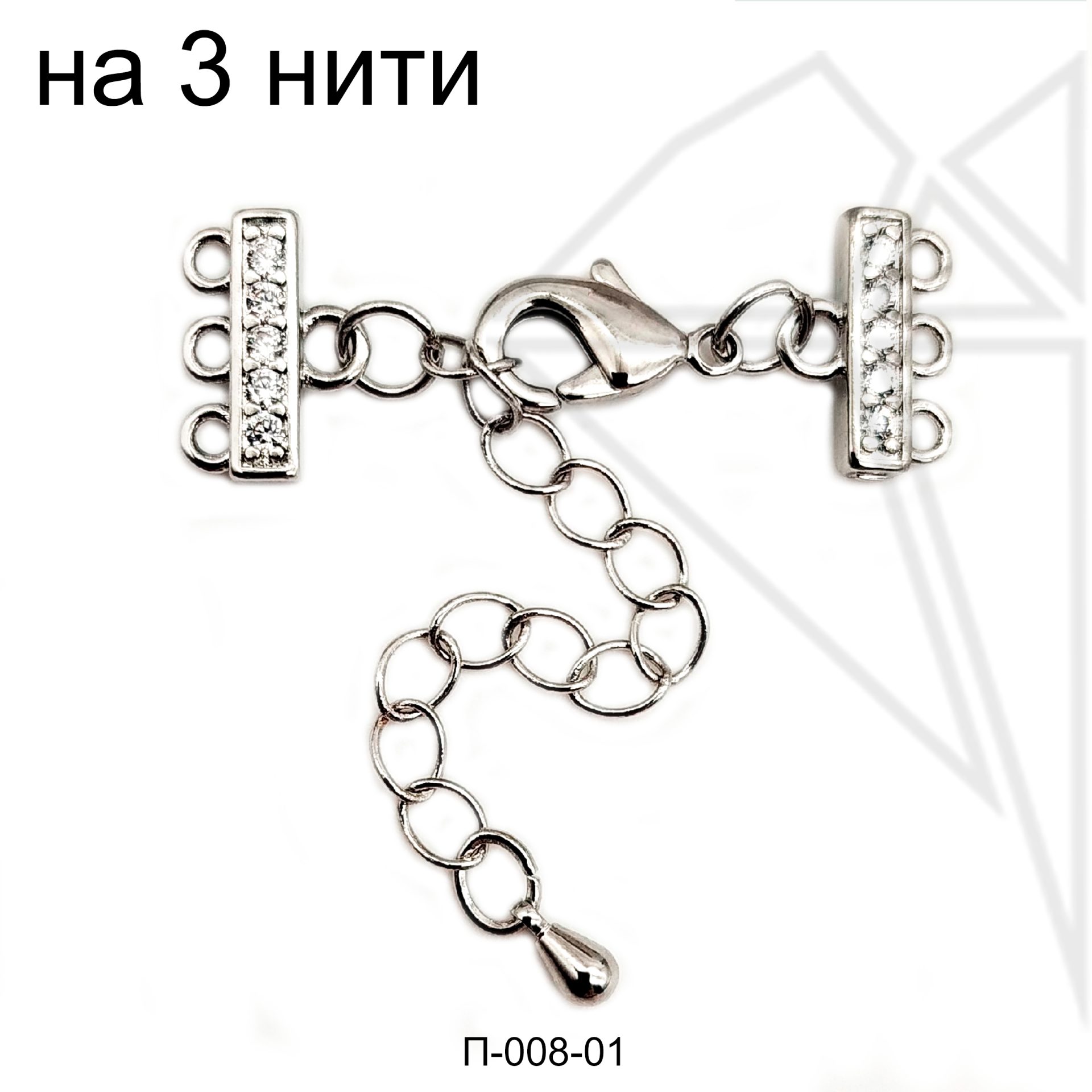 Переходник на 3 нитей с родированным покрытием (по латуни) и удлинительной цепочкой