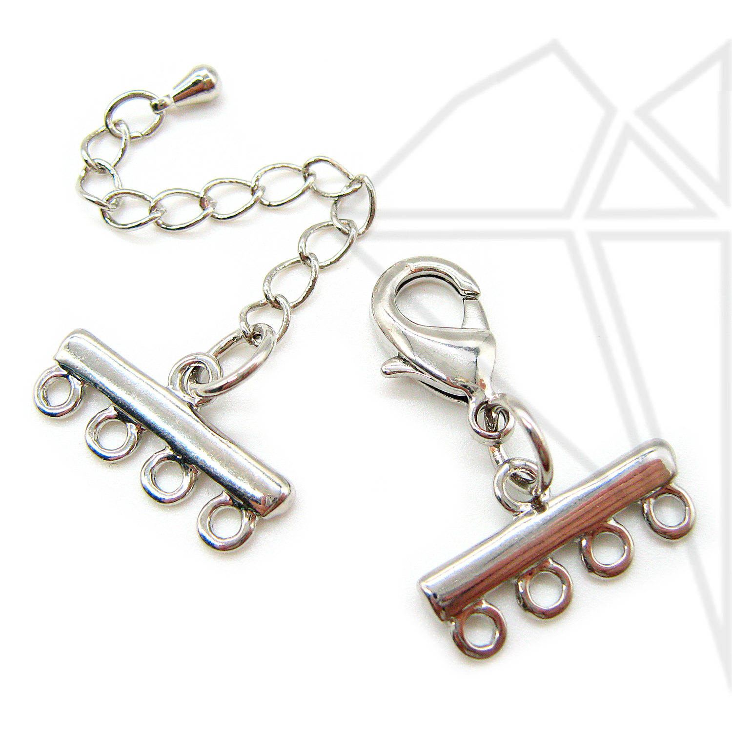Переходники на 4 нитей с удлинительной цепочкой класса люкс представлены с родированным покрытием (по латуни).