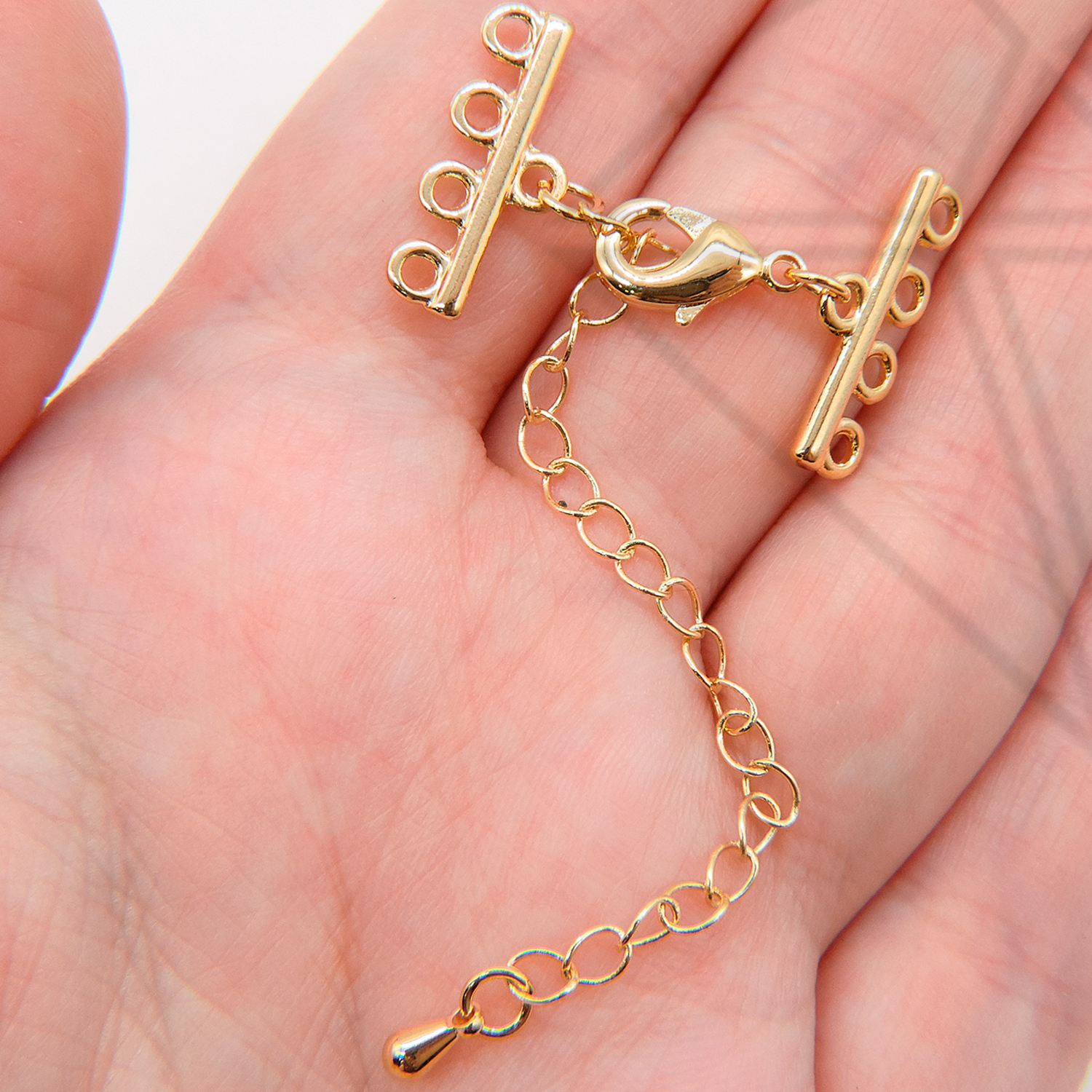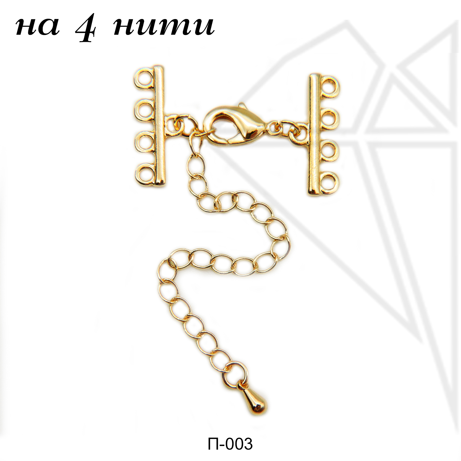 Переходники на 4 нити с удлинительной цепочкой класса люкс представлены с родированным покрытием (по латуни).