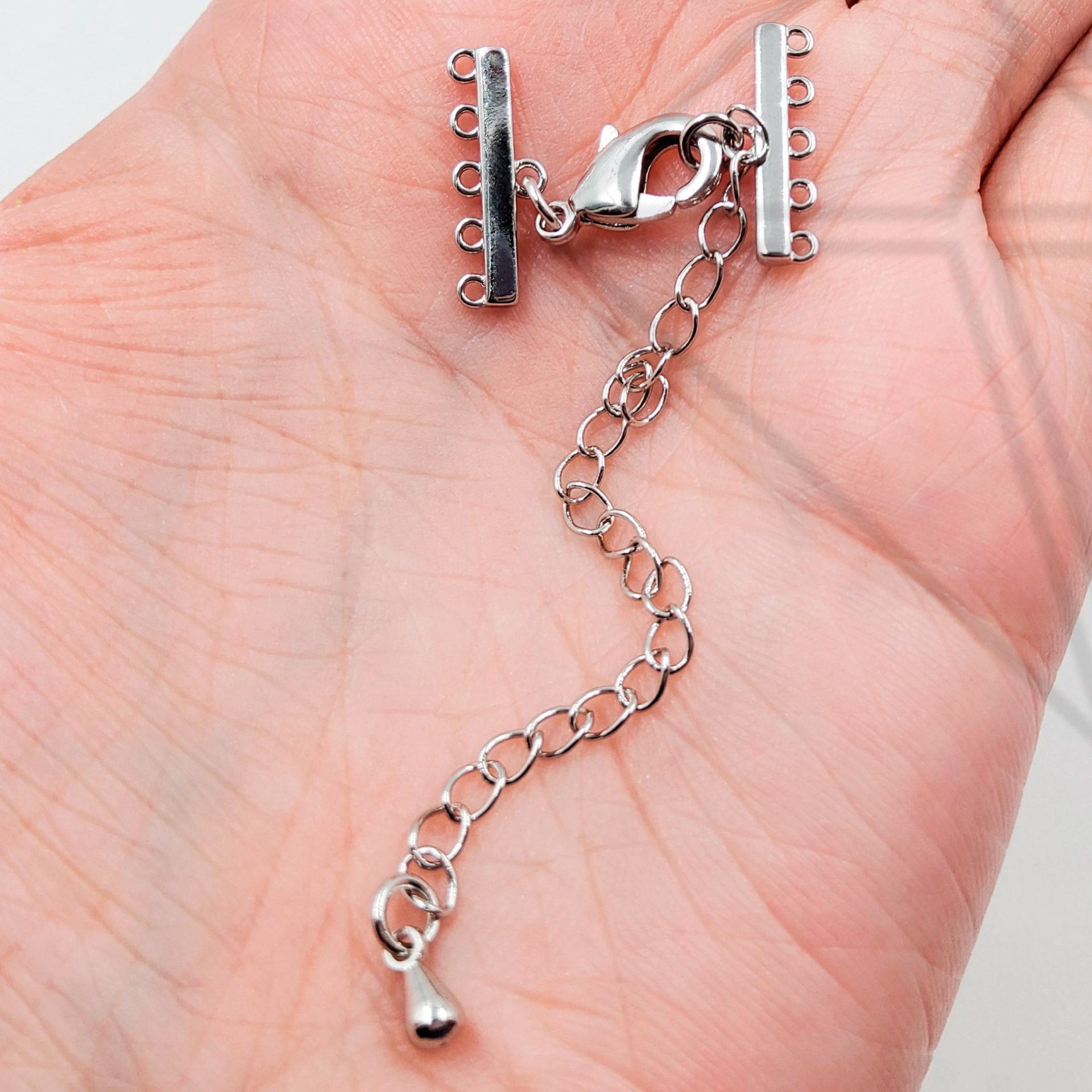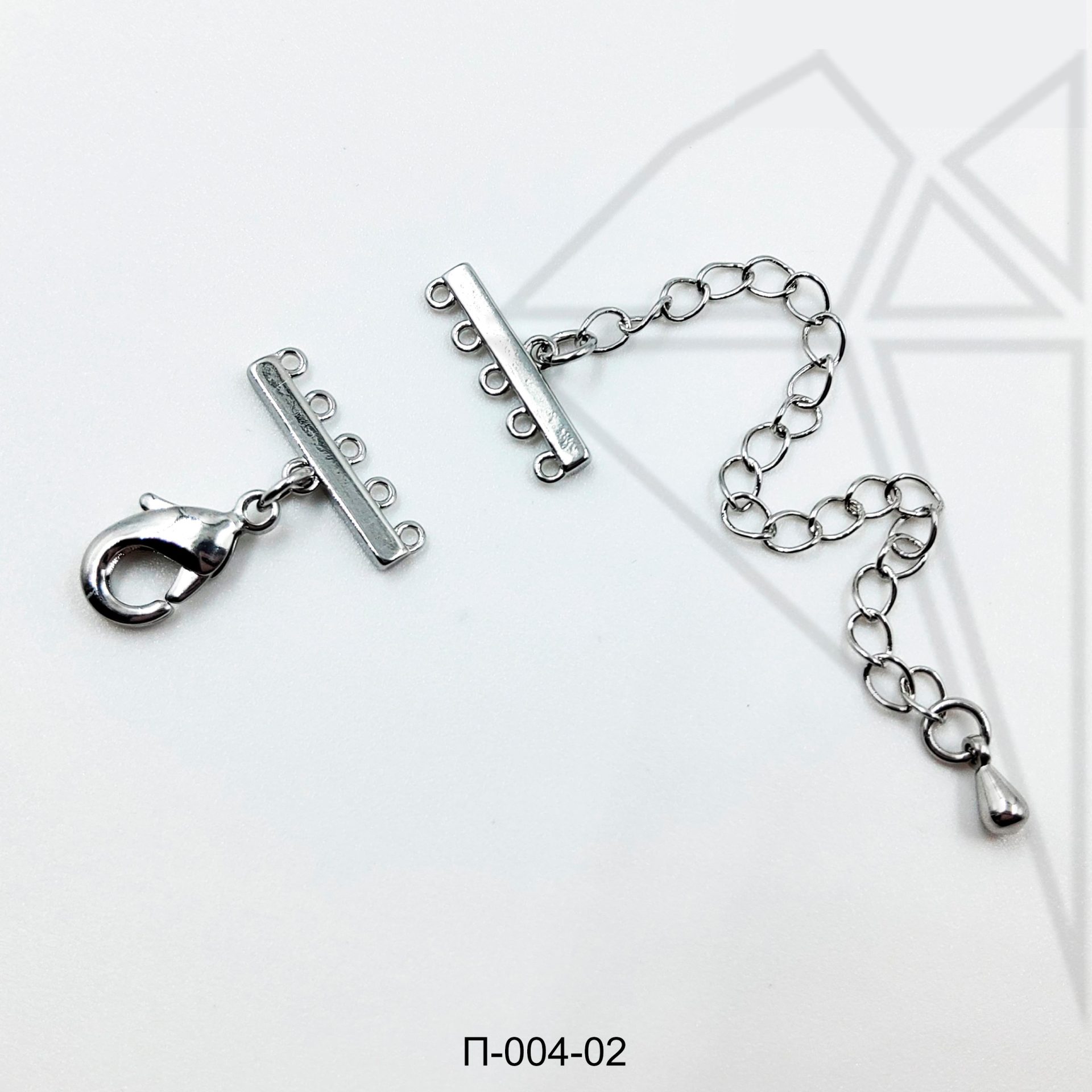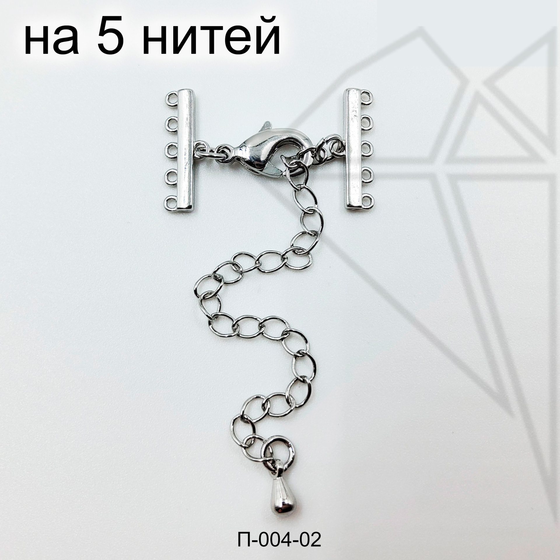 Переходники на 5 нитей шириной 15 мм с удлинительной цепочкой класса люкс представлены с родированным покрытием (по латуни).