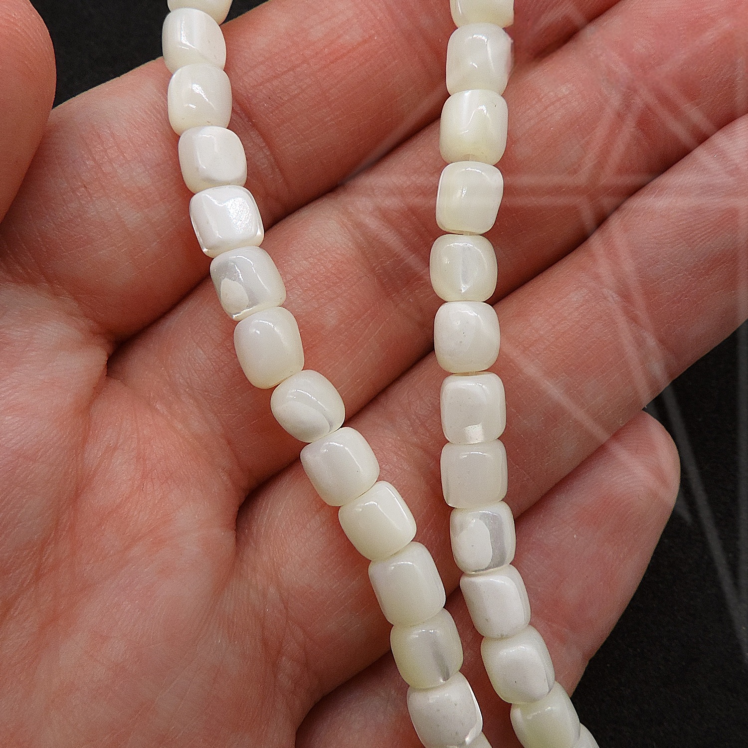 Перламутр белого цвета в форме «бочки».