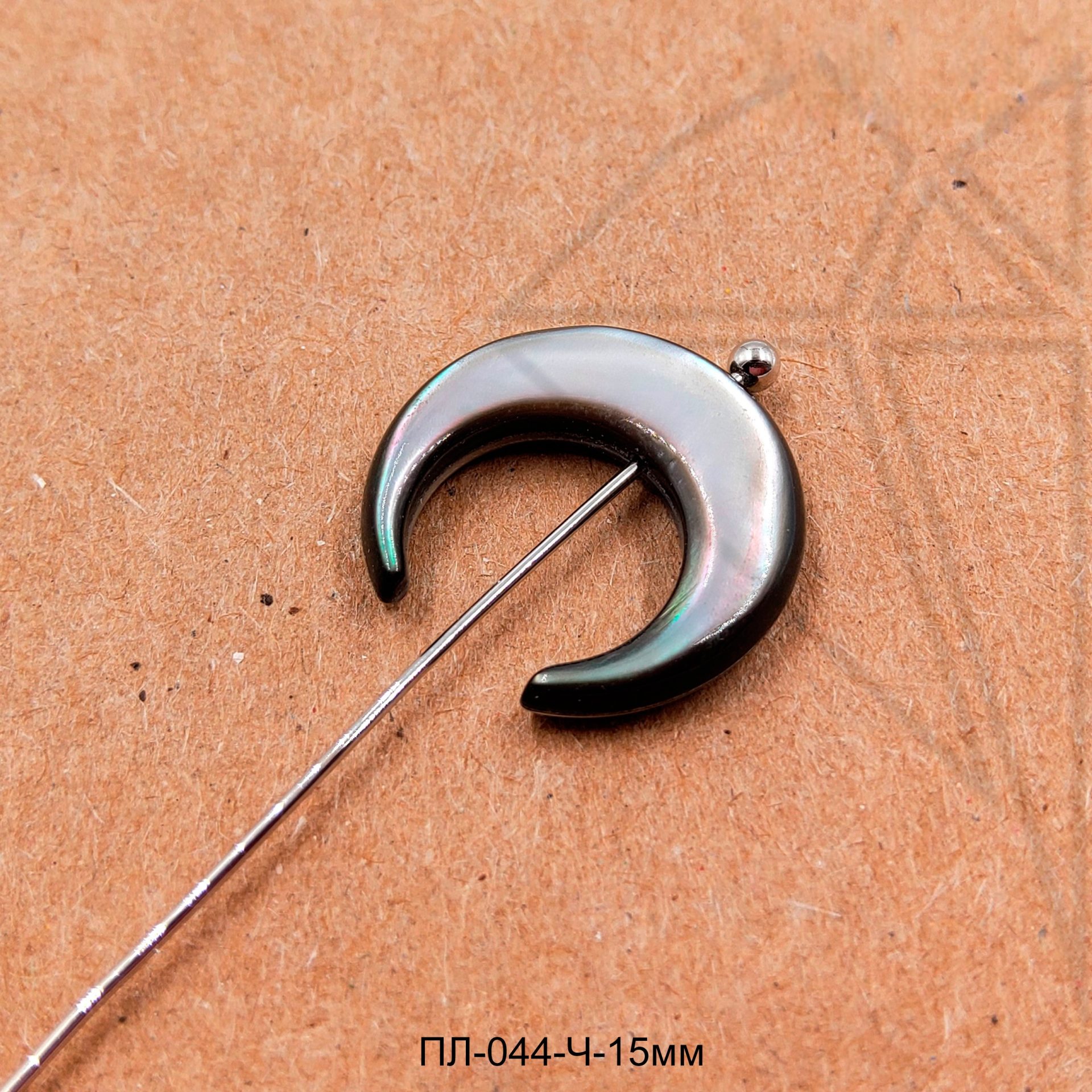 Перламутр черного цвета в форме лунницы 15 мм.