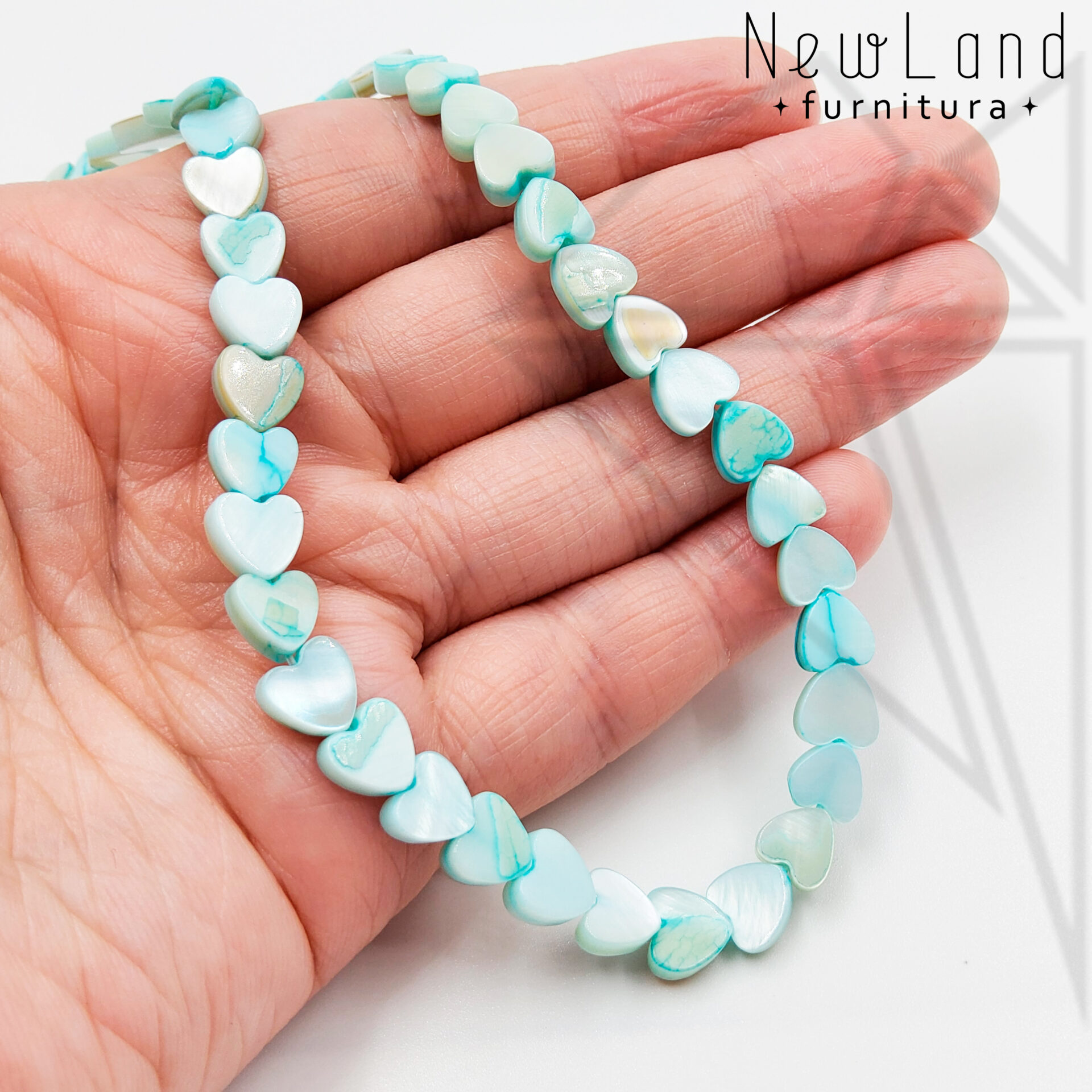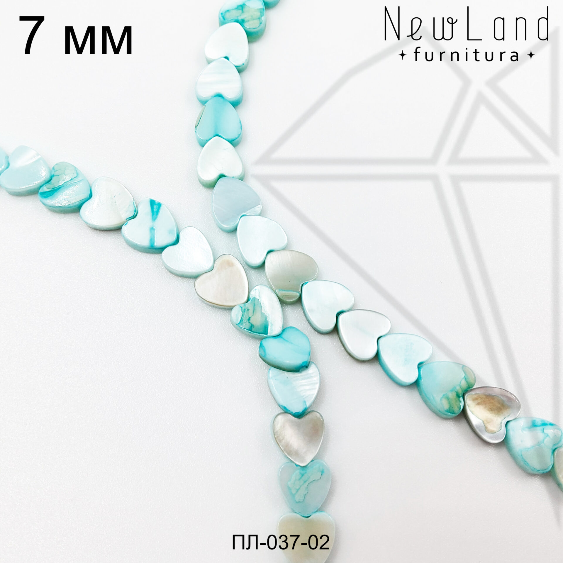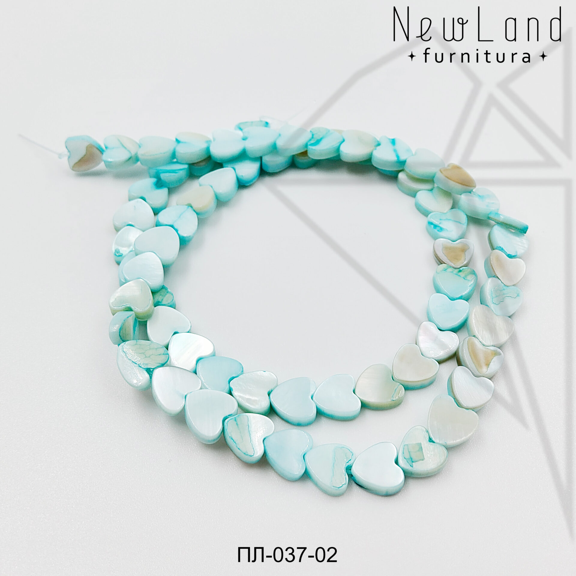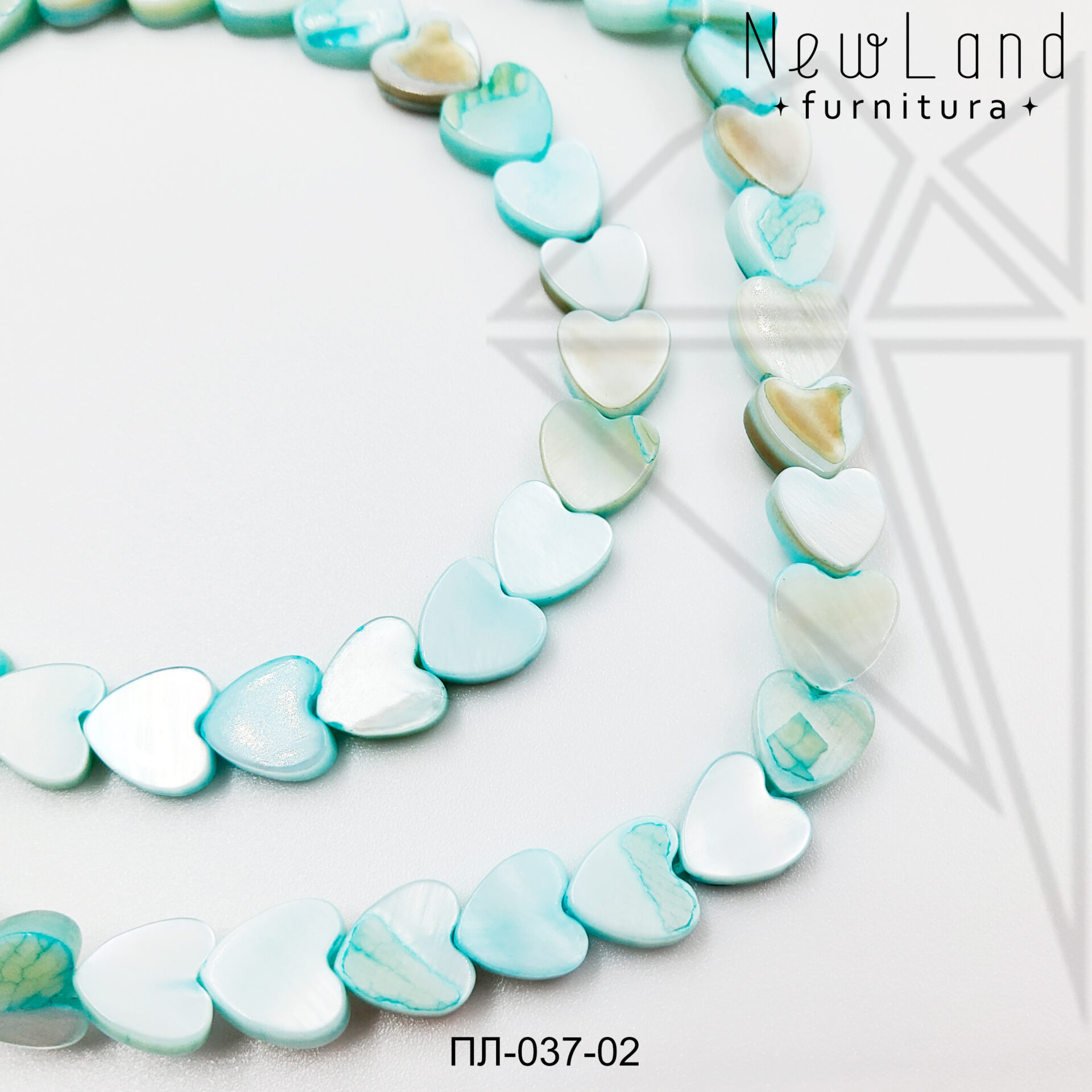 Перламутр голубого цвета в форме сердечек с продольным отверстием.