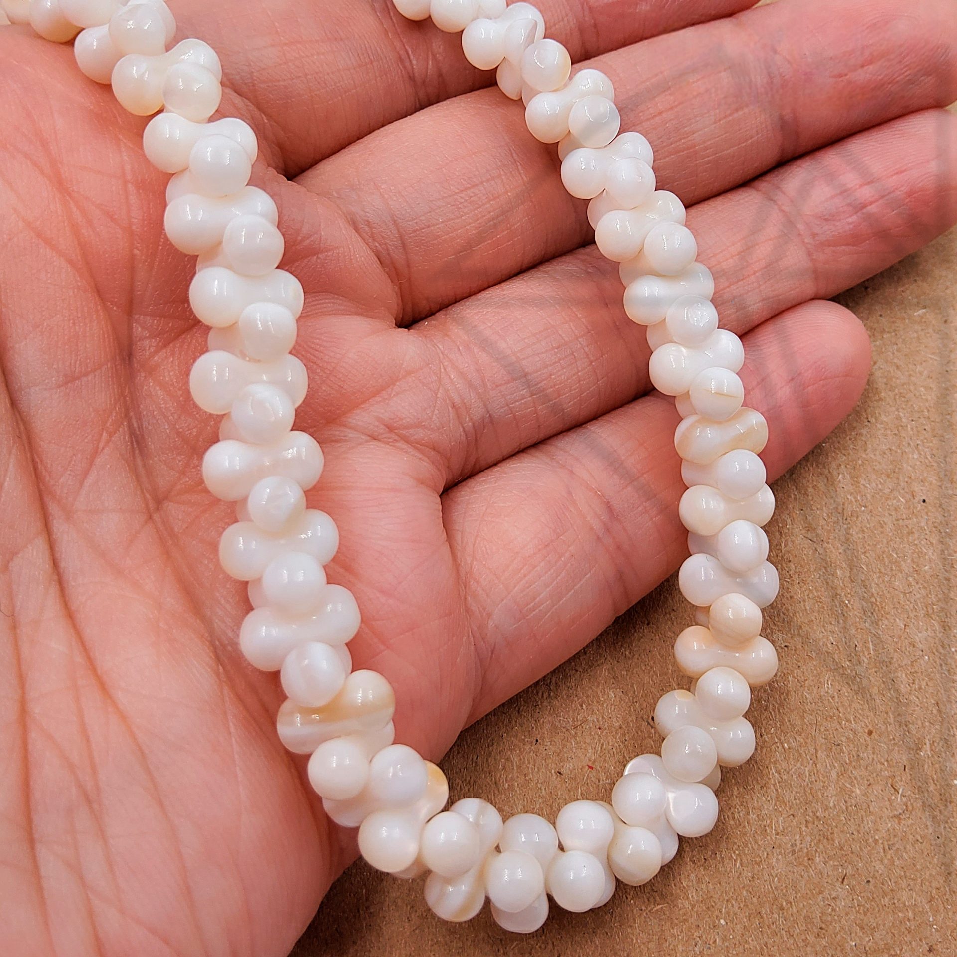 Перламутр белого цвета в форме косточки (гантели) 7х3,5 мм.