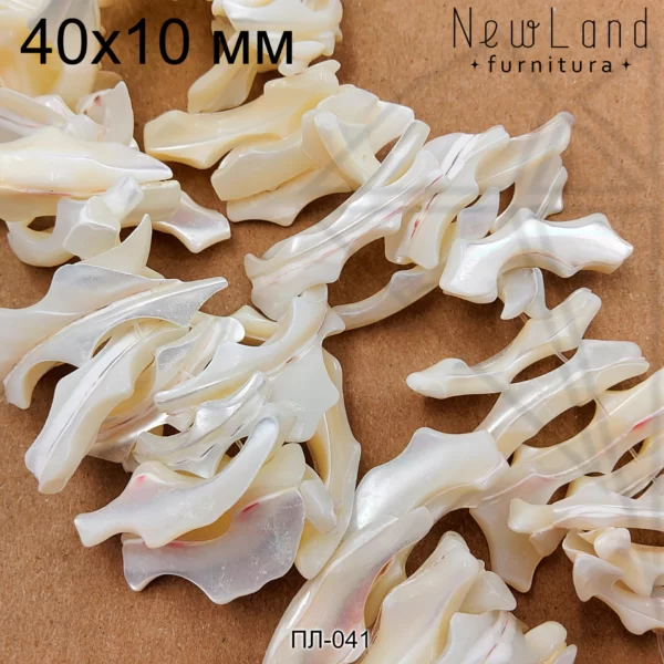 Перламутр белого цвета в форме лепестков 40х5 мм.