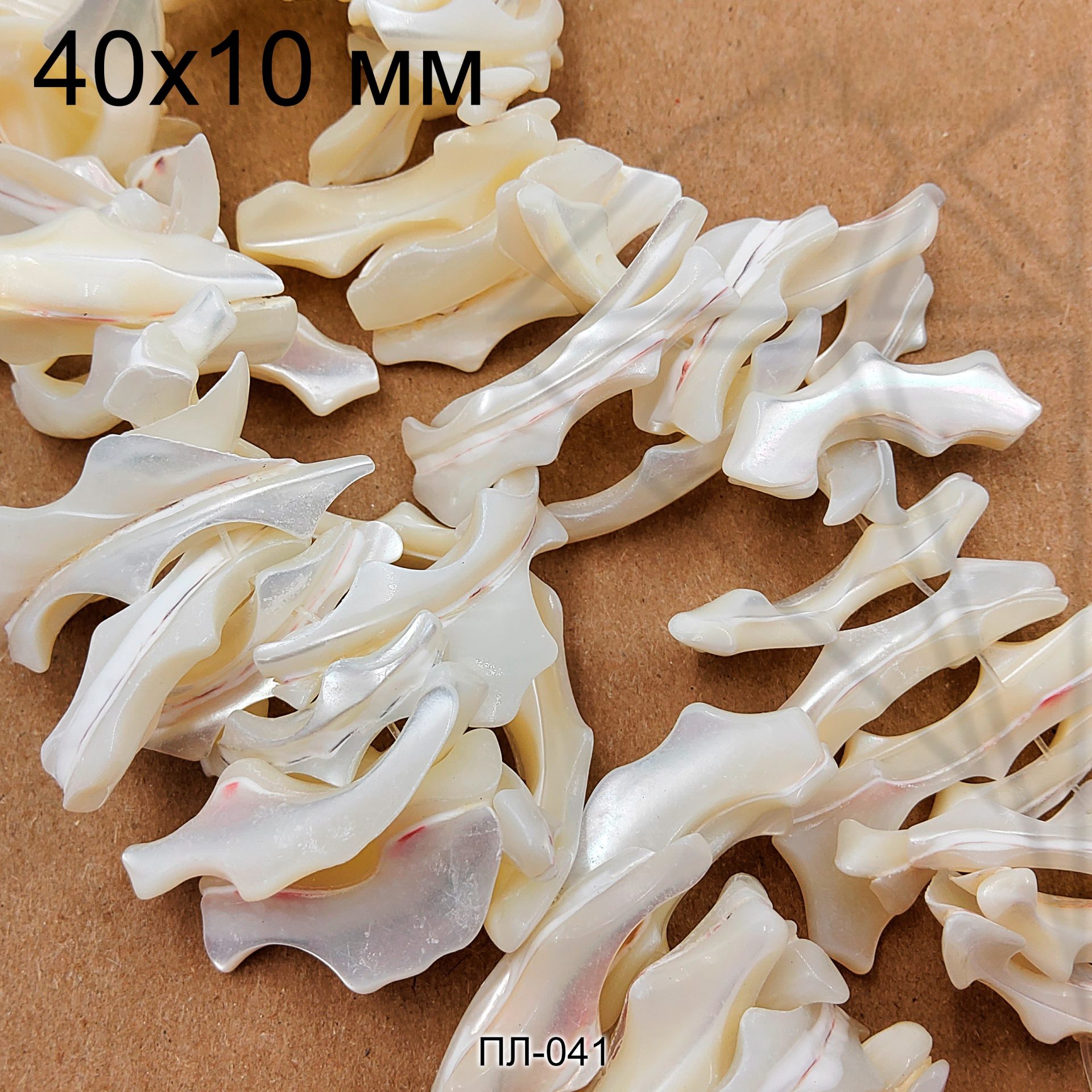 Перламутр белого цвета в форме лепестков 40х5 мм.