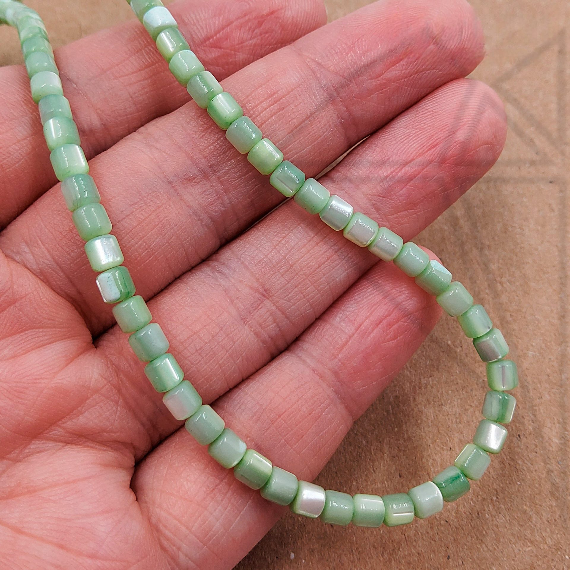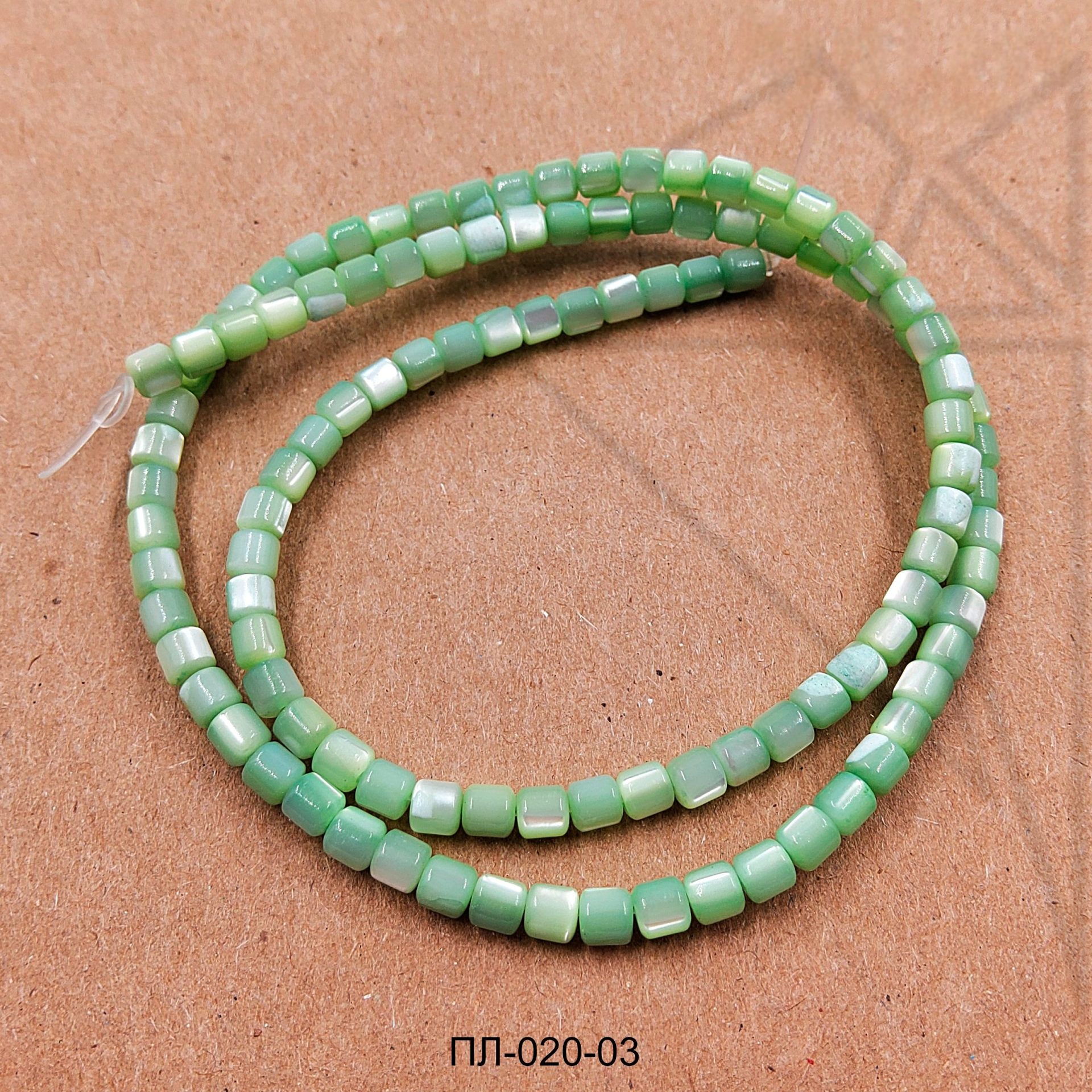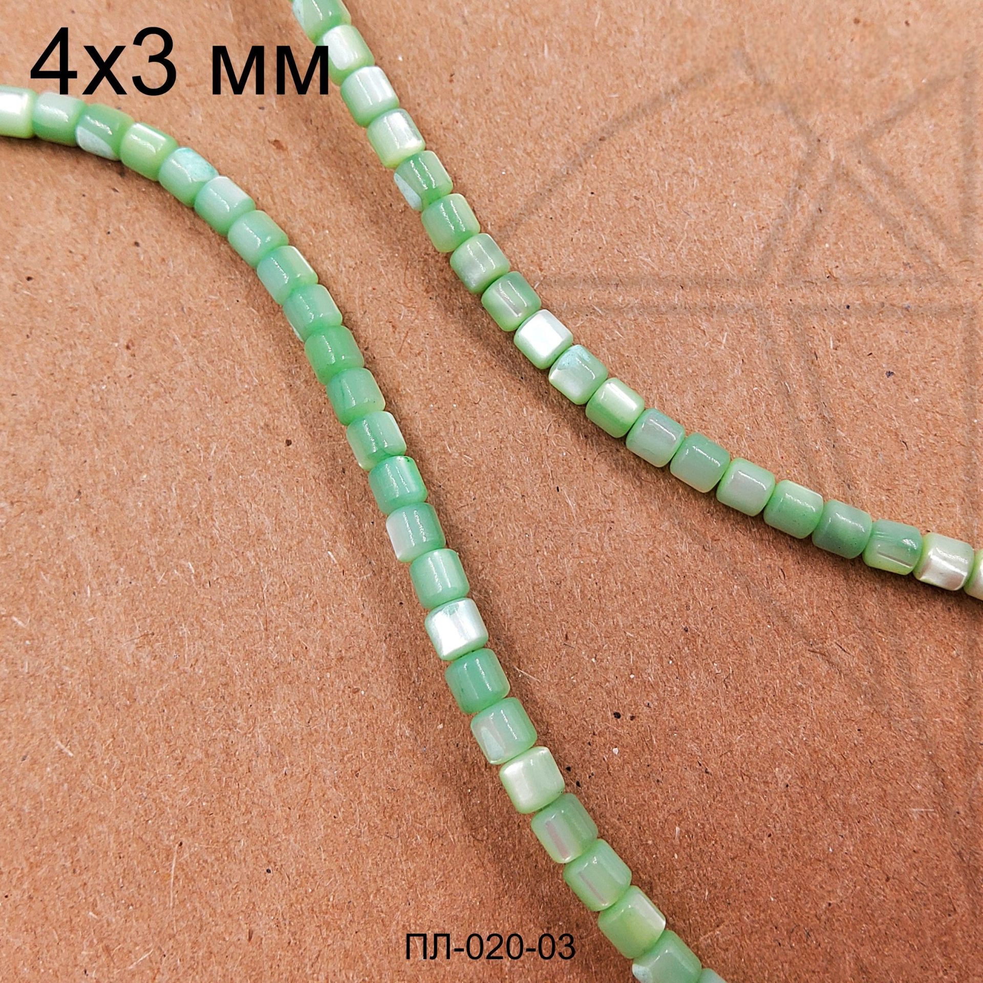 Перламутр зеленого цвета в форме «бочонка»3,5х3,2 мм.