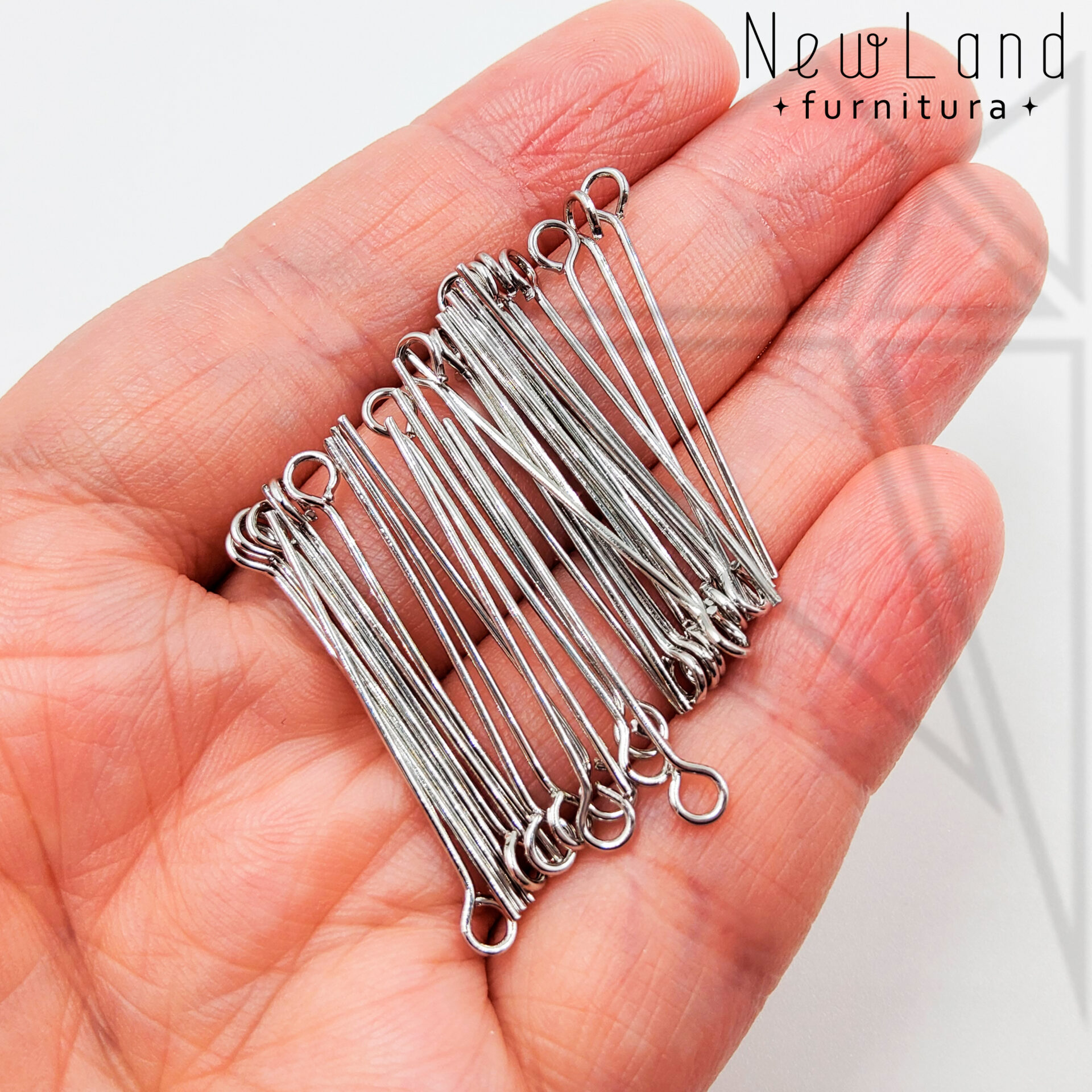 Пины с петелькой длиной 30 мм класса люкс с родированным покрытием по латуни.