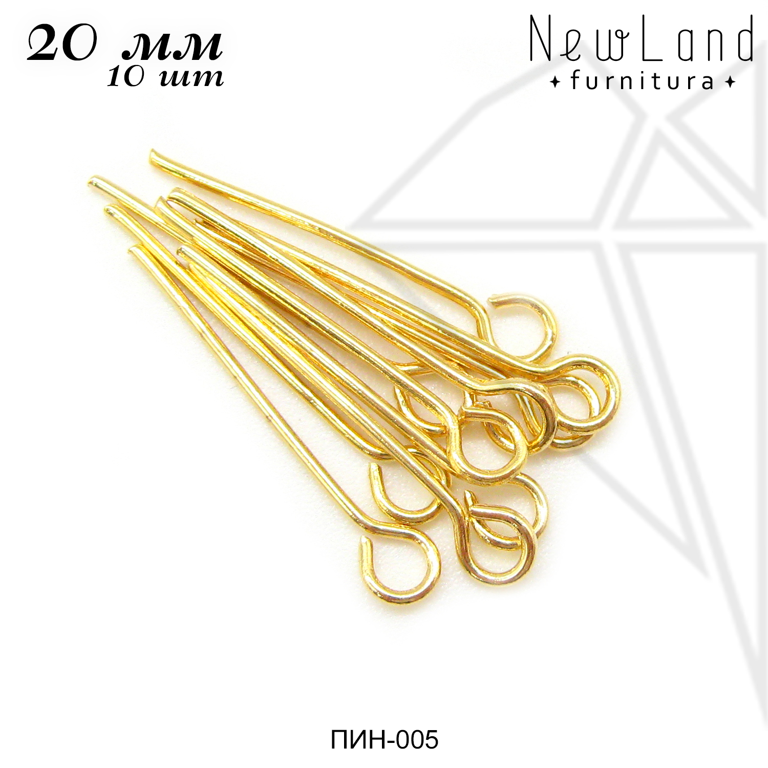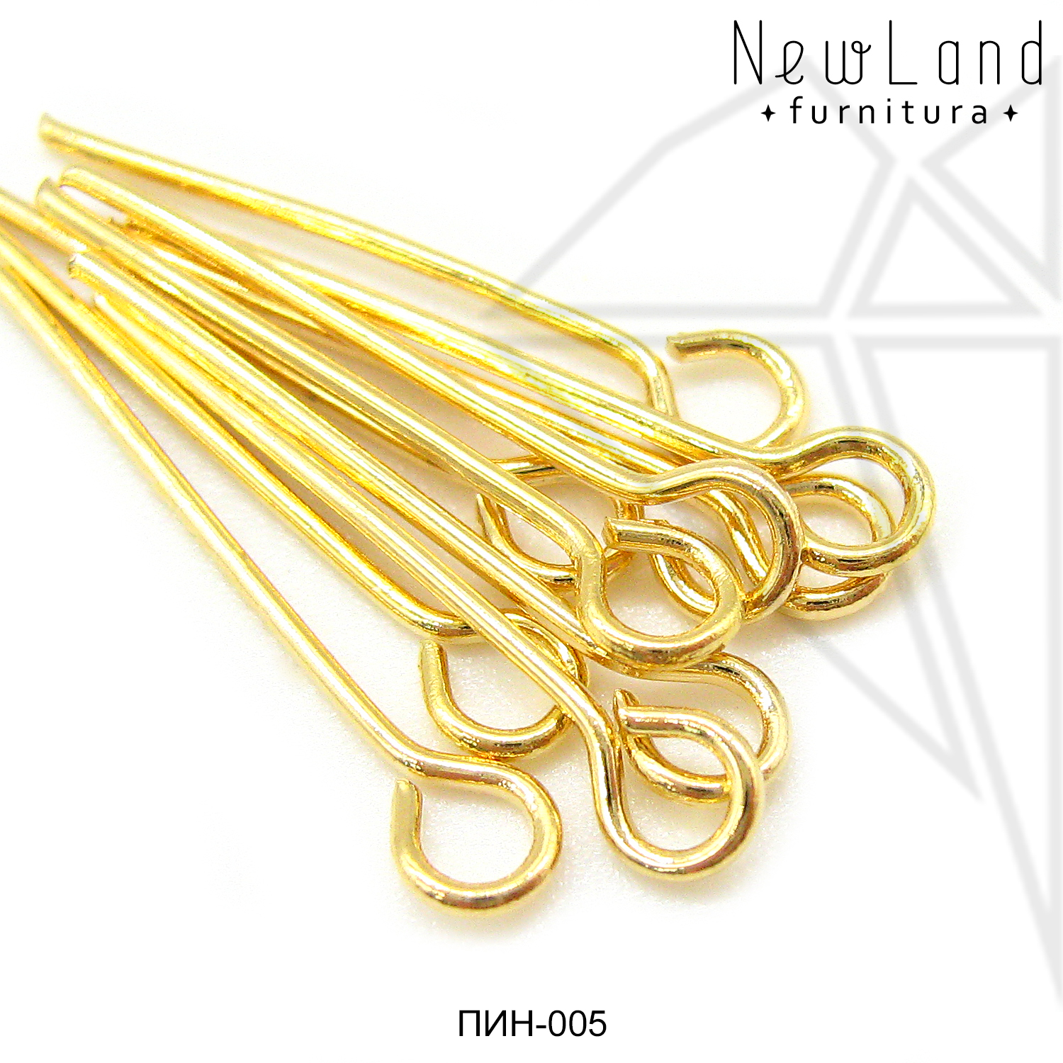 Пины с петелькой длиной 30 мм класса люкс с позолоченным покрытием по латуни.