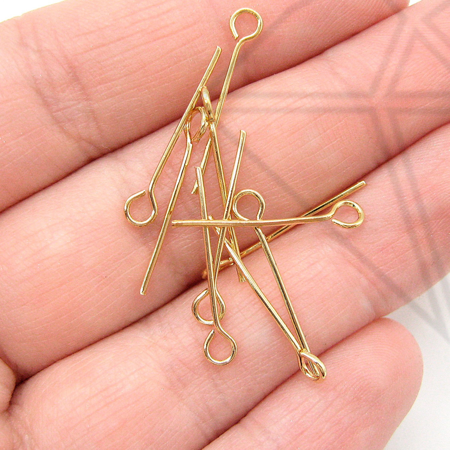 Пины с петелькой длиной 30 мм класса люкс с позолоченным покрытием по латуни.