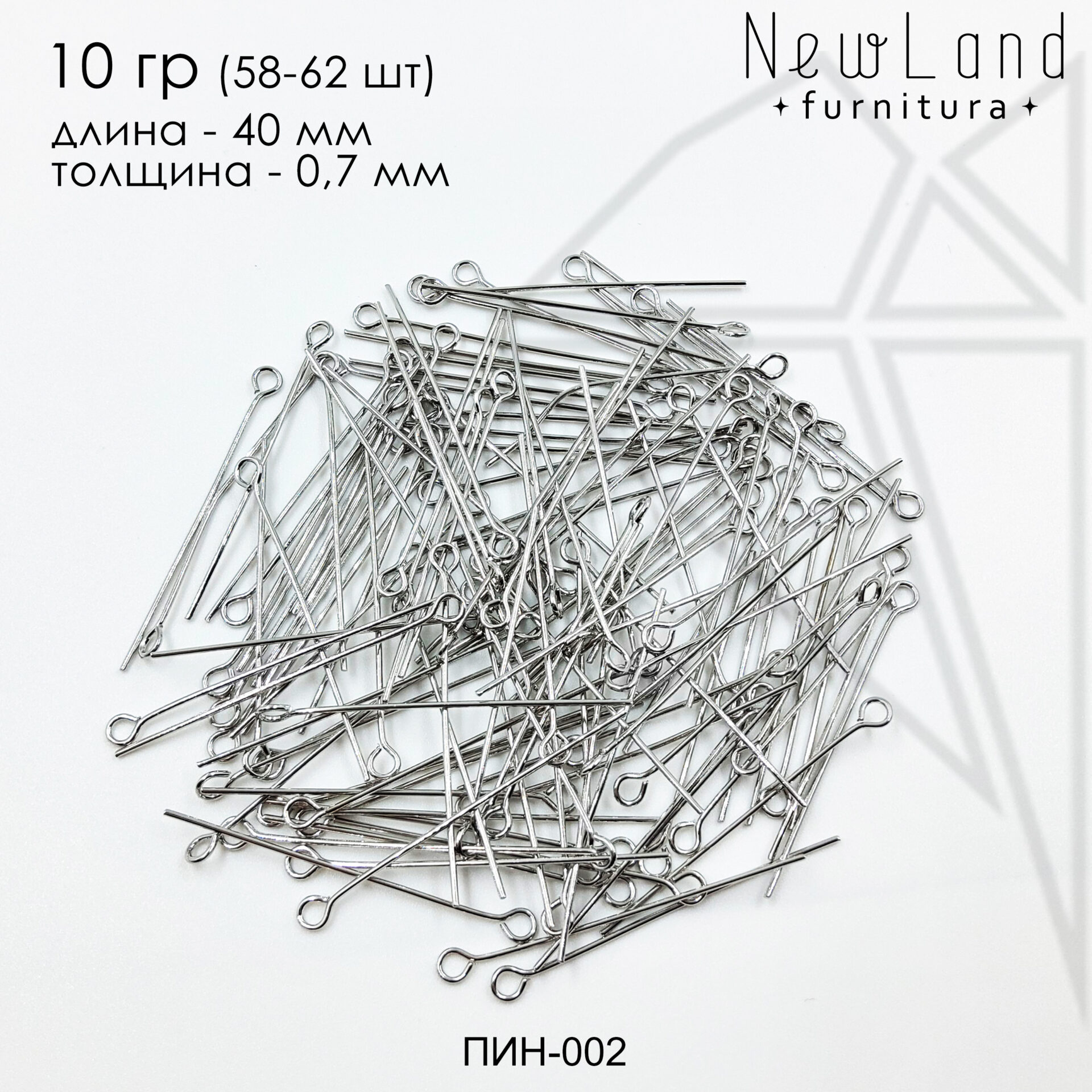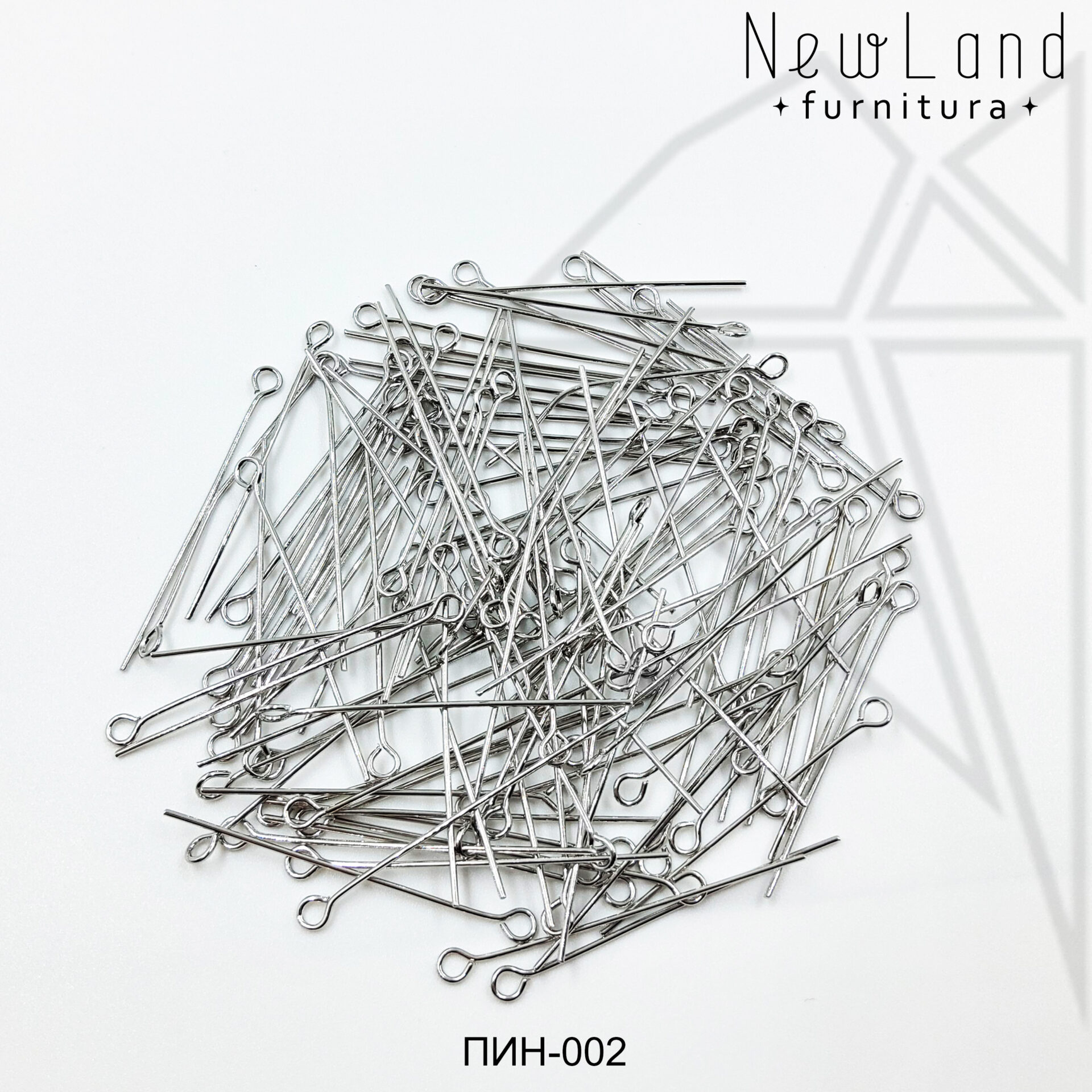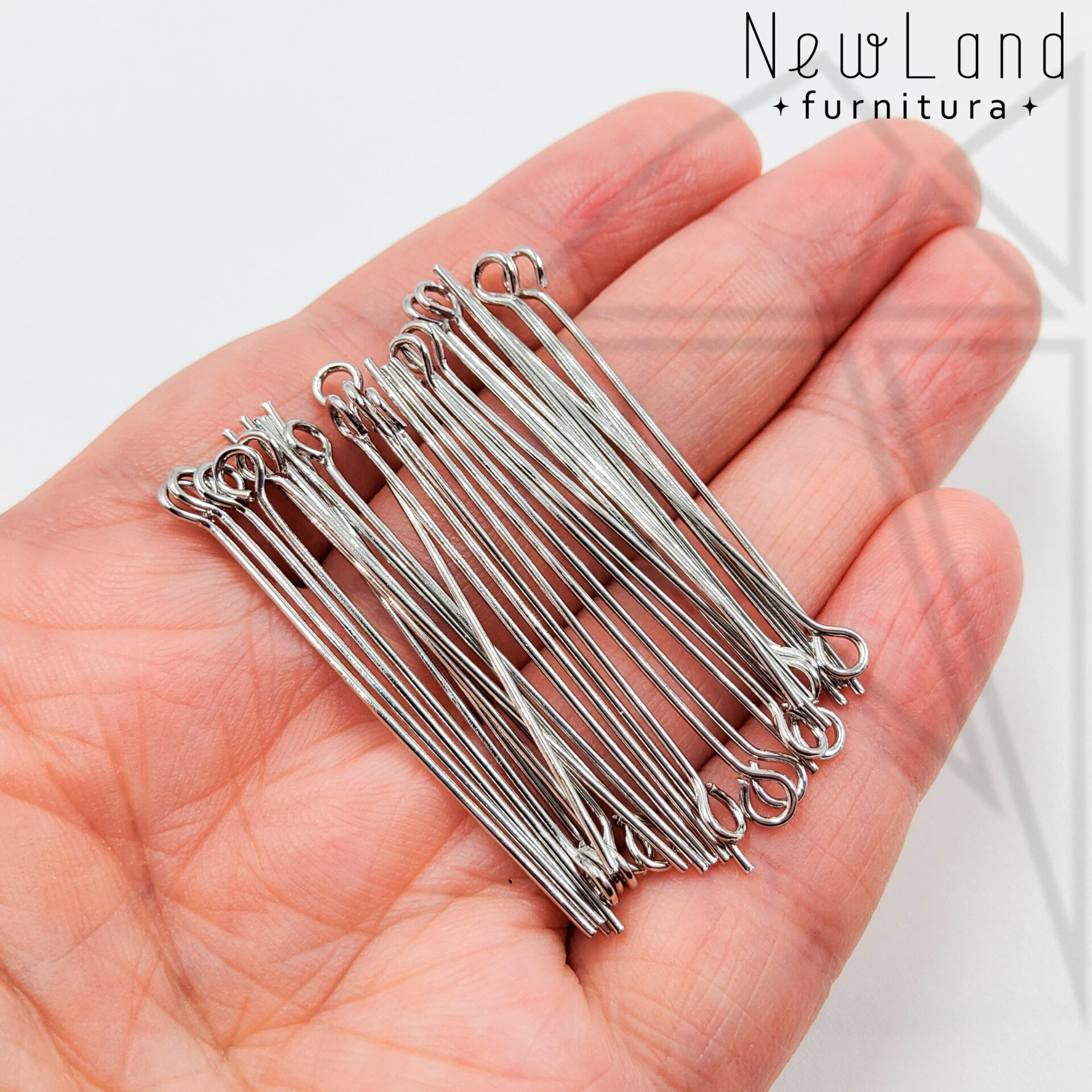 Пины с петелькой длиной 40 мм класса люкс с родированным покрытием по латуни.