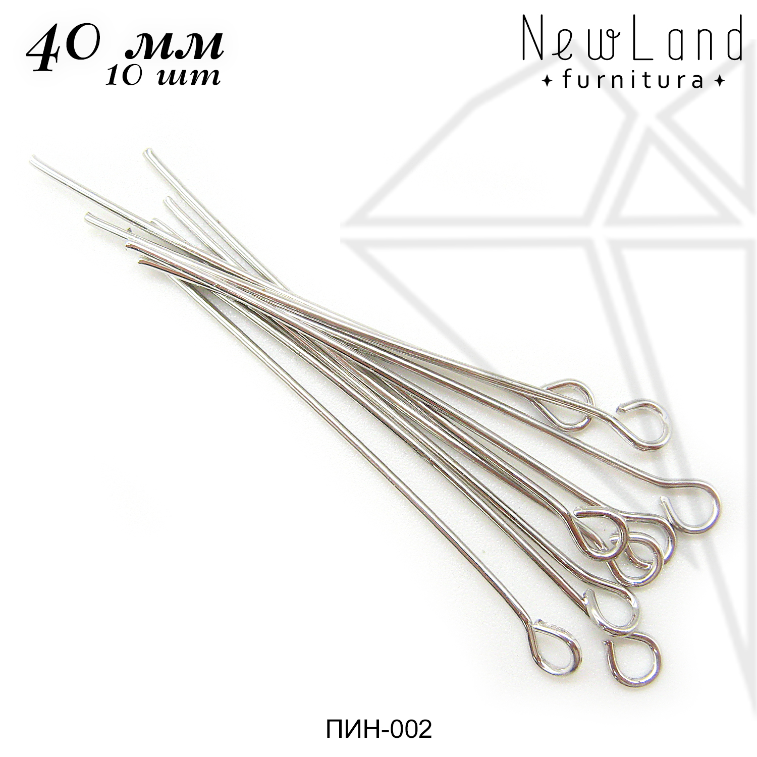 Пины с петелькой длиной 40 мм класса люкс с родированным покрытием по латуни.