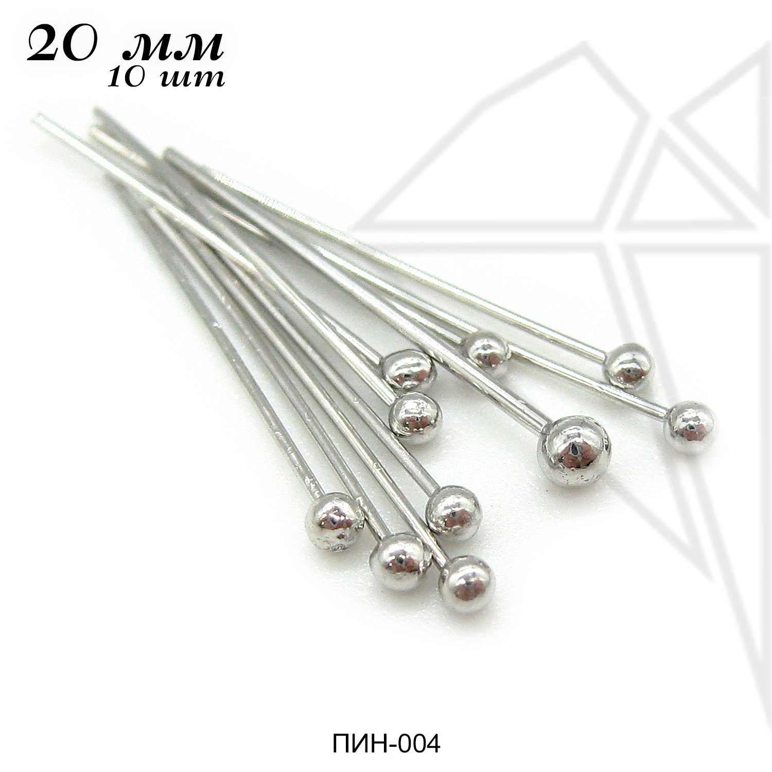 Пины с шариком длиной 20 мм класса люкс с родированным покрытием по латуни.