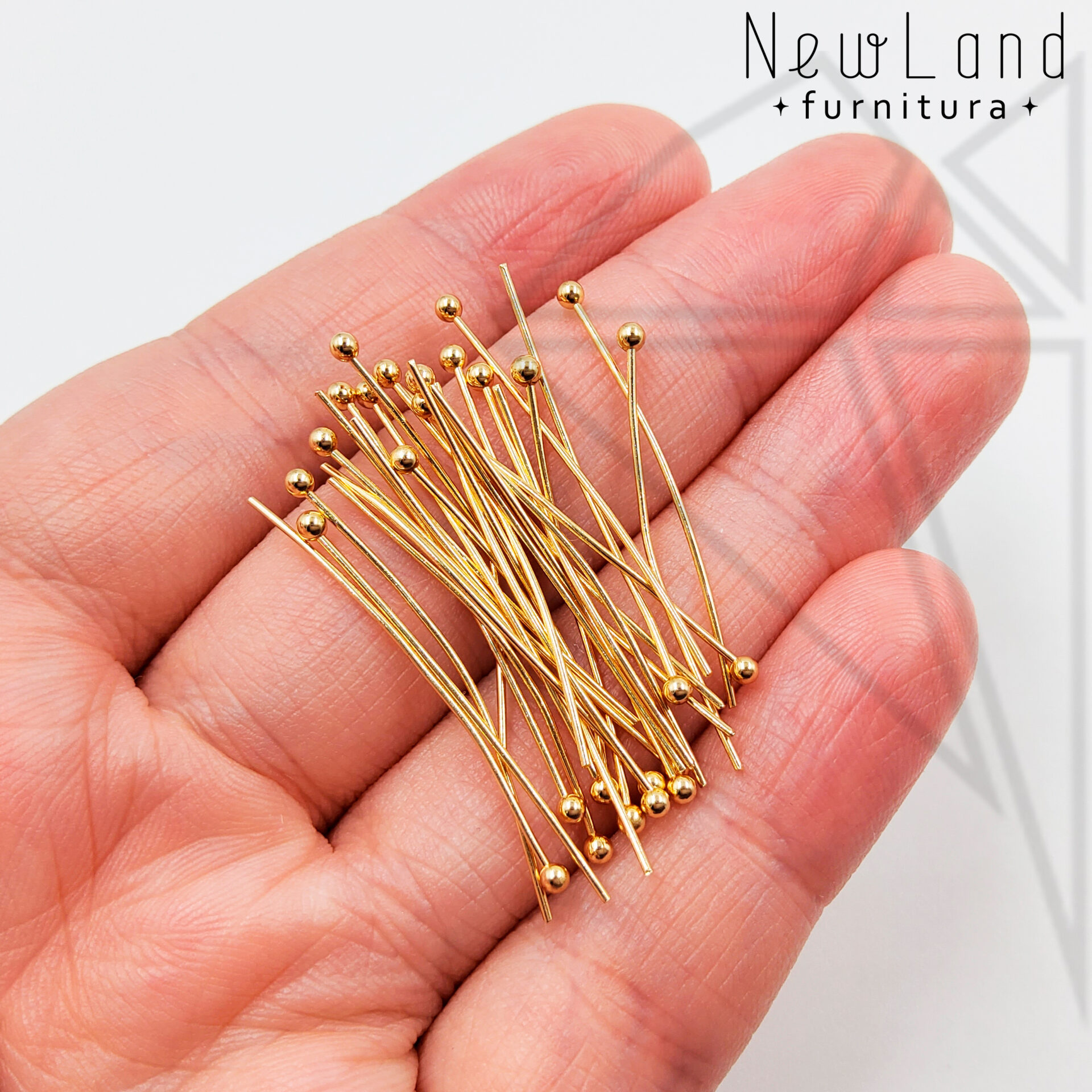 Пины с шариком длиной 30 мм класса люкс с позолоченным покрытием (по латуни).