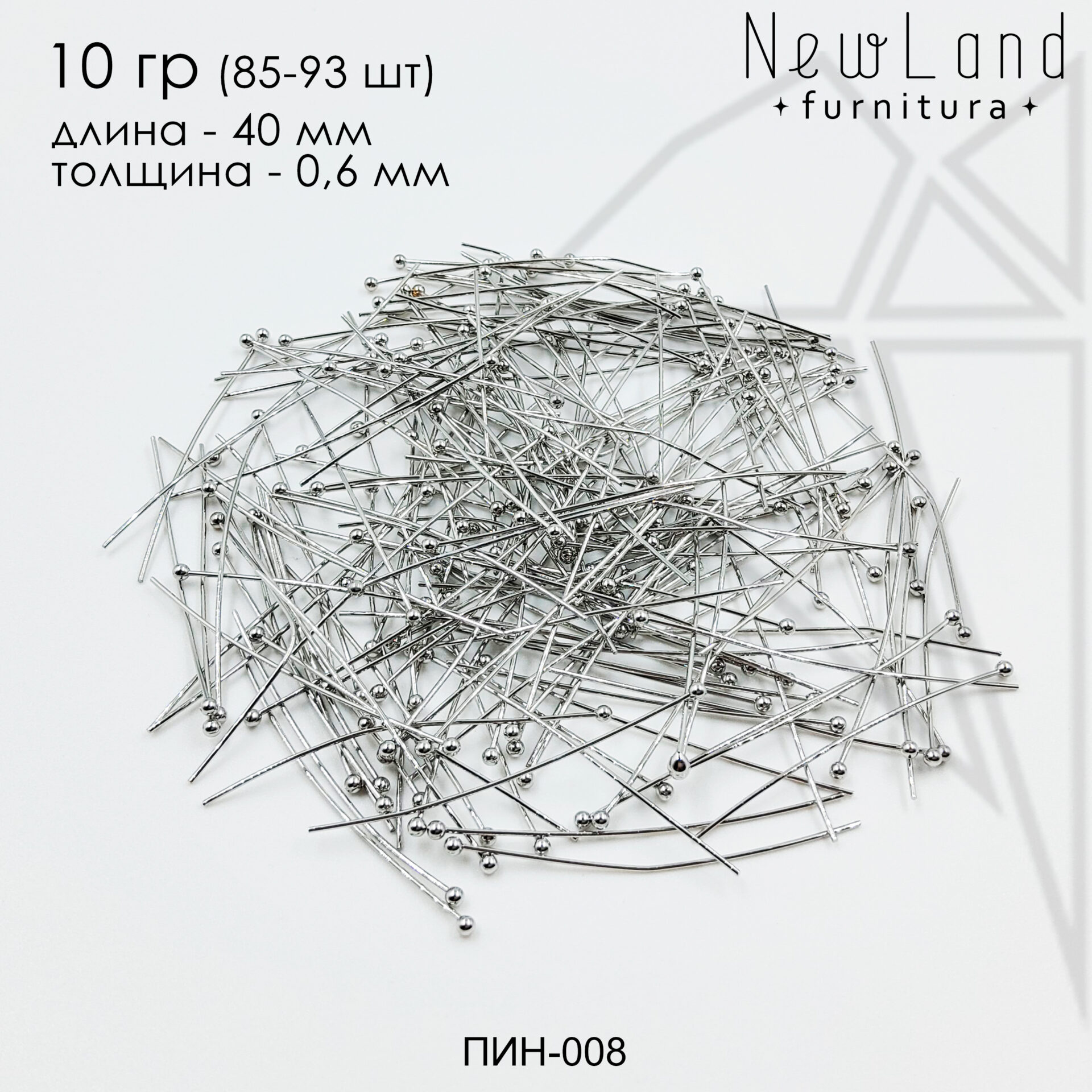 Пины с шариком длиной 40 мм класса люкс с родированным покрытием (по латуни).