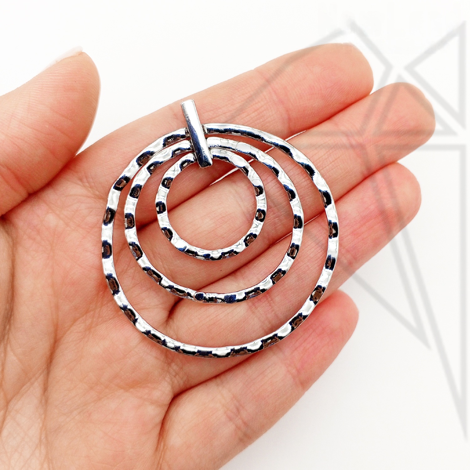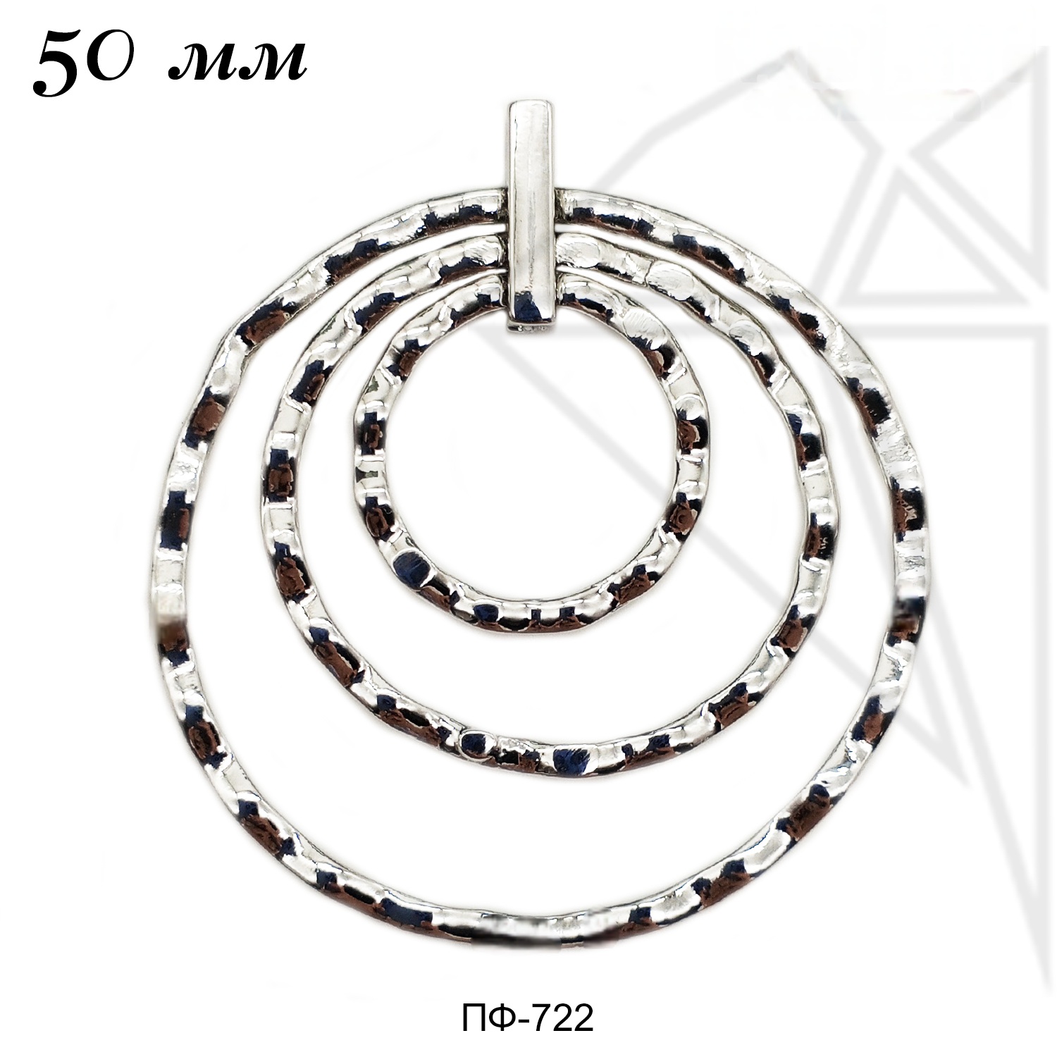 Подвеска c круглыми кольцами 50 мм класса люкс с родированным покрытием (по латуни).