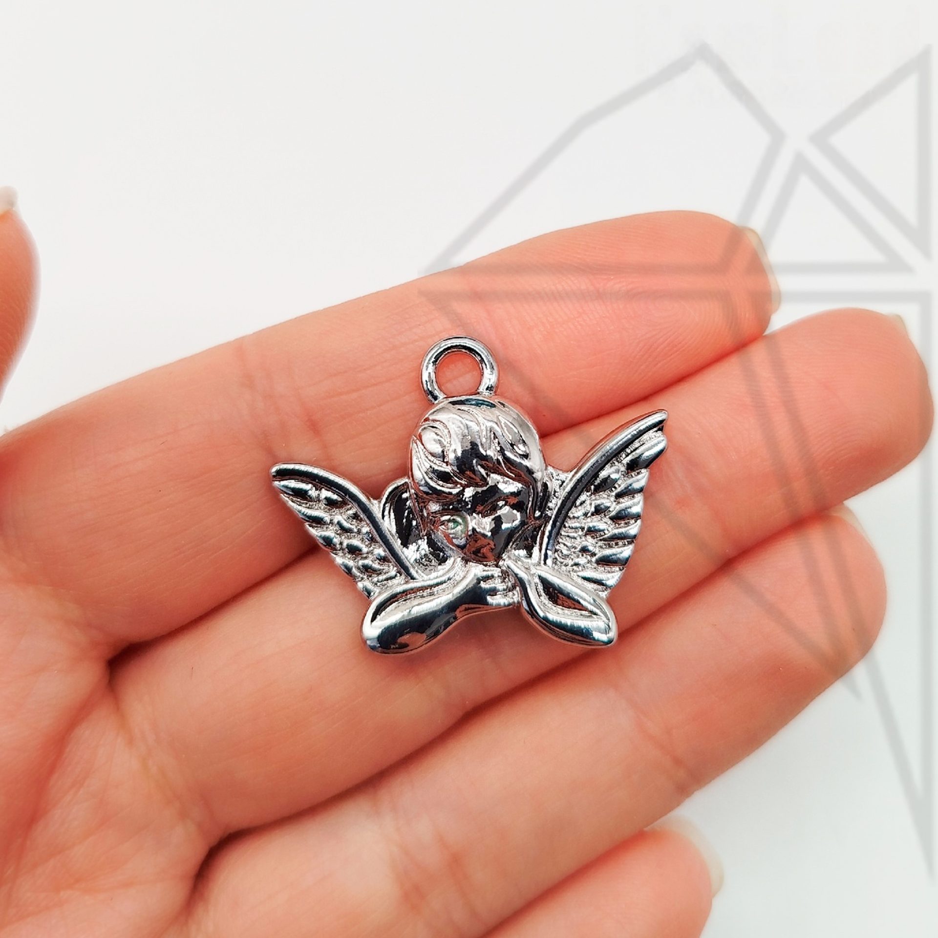 Подвеска ангелочек 20 мм класса люкс с родированным покрытием (по латуни)