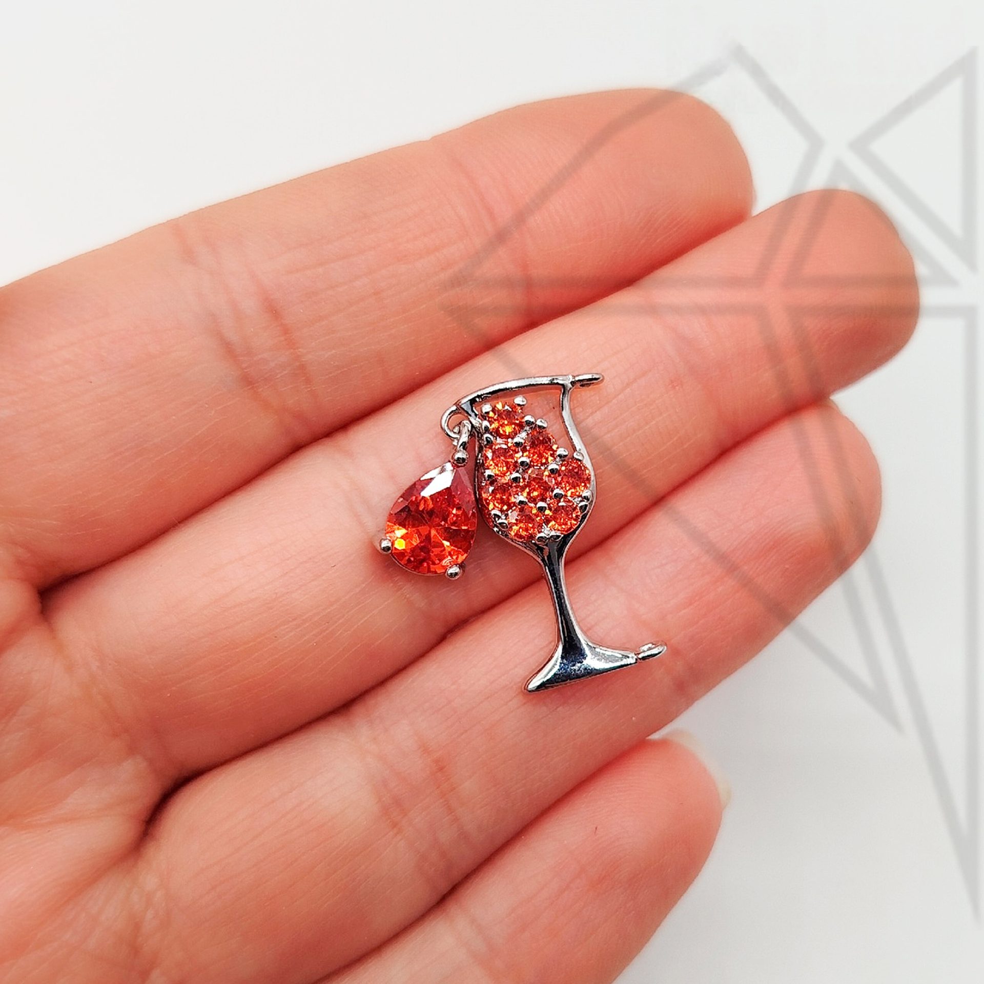 Подвеска бокал с красными фианитами 21 мм класса люкс с родированным покрытием (по латуни)