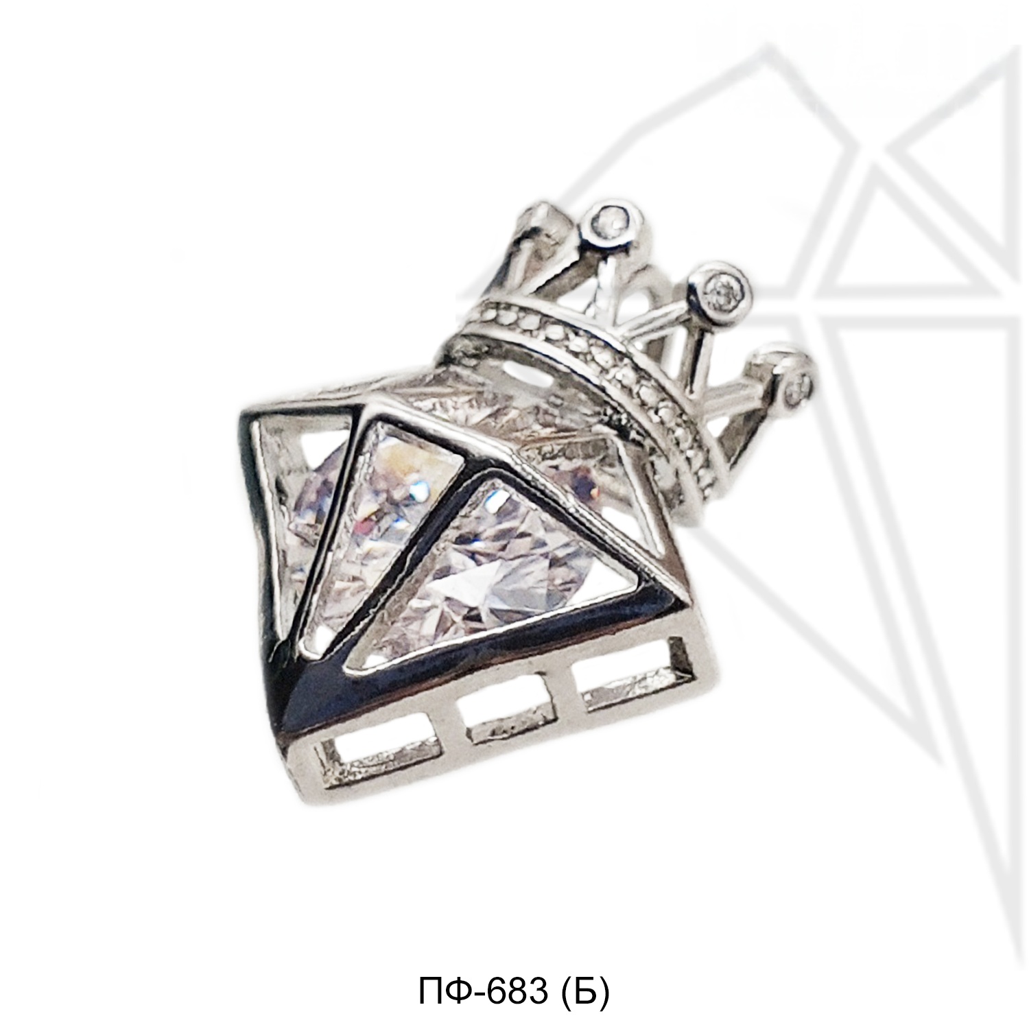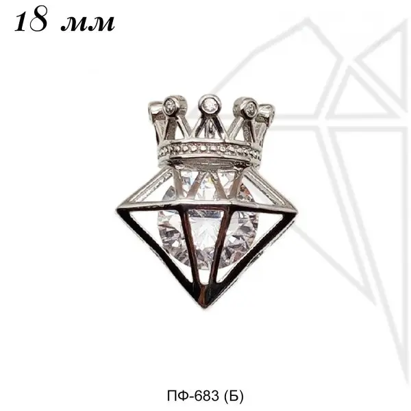 Подвеска в форме бриллианта в короне класса люкс с родированным покрытием (по латуни).