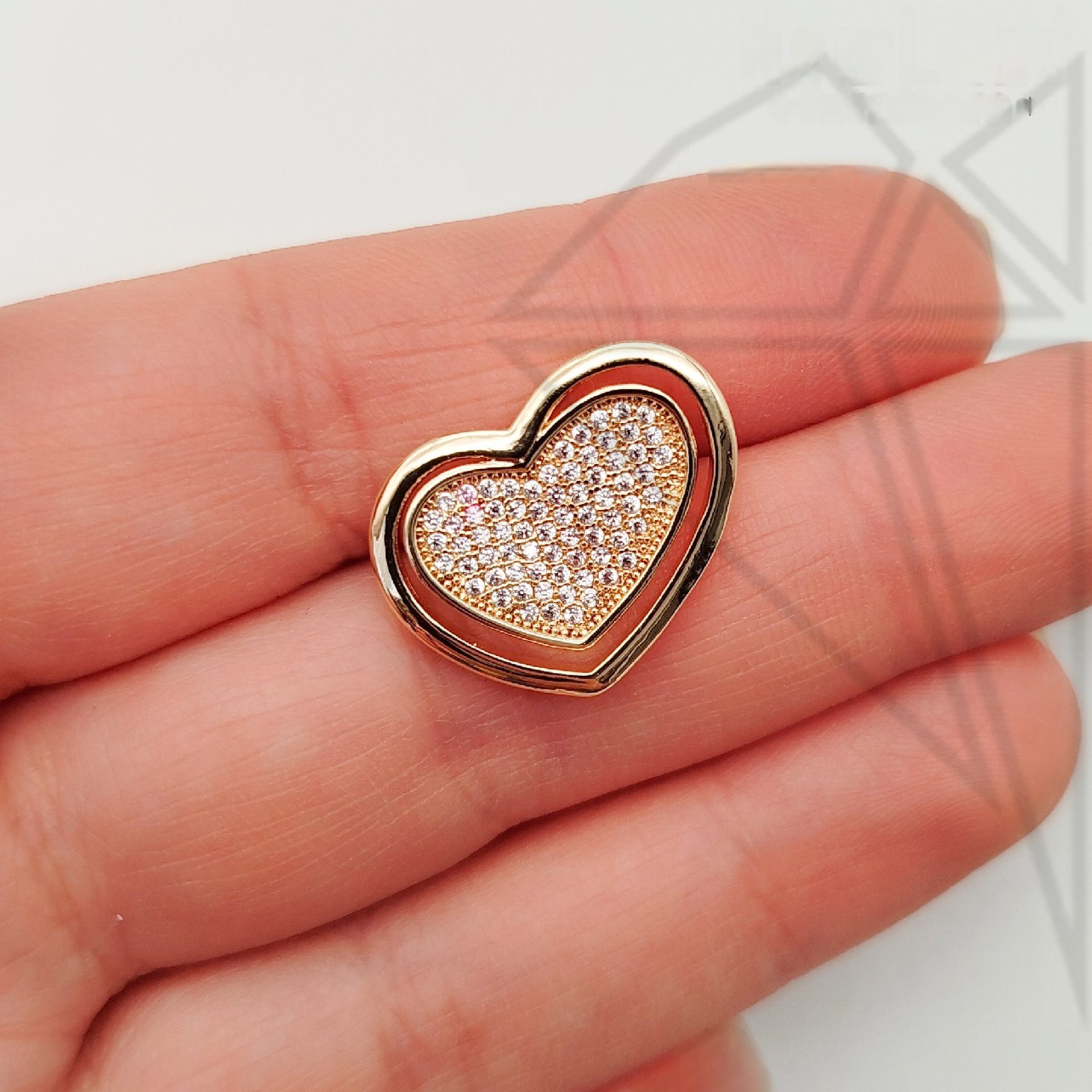 Подвеска бусина сердце с фианитами класса люкс с позолоченным покрытием (по латуни)