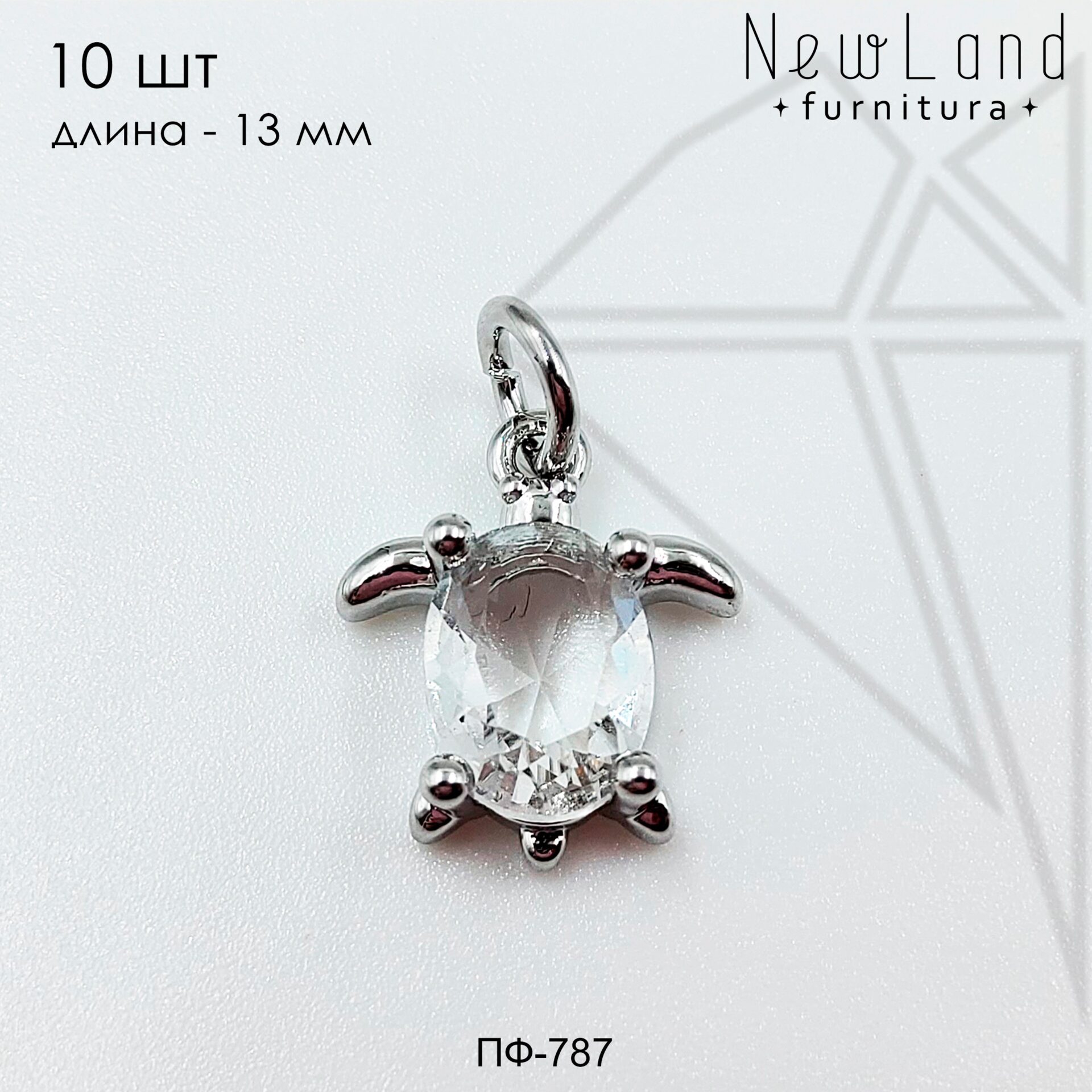 Подвеска черепаха с фианитами класса люкс с родированным покрытием (по латуни).