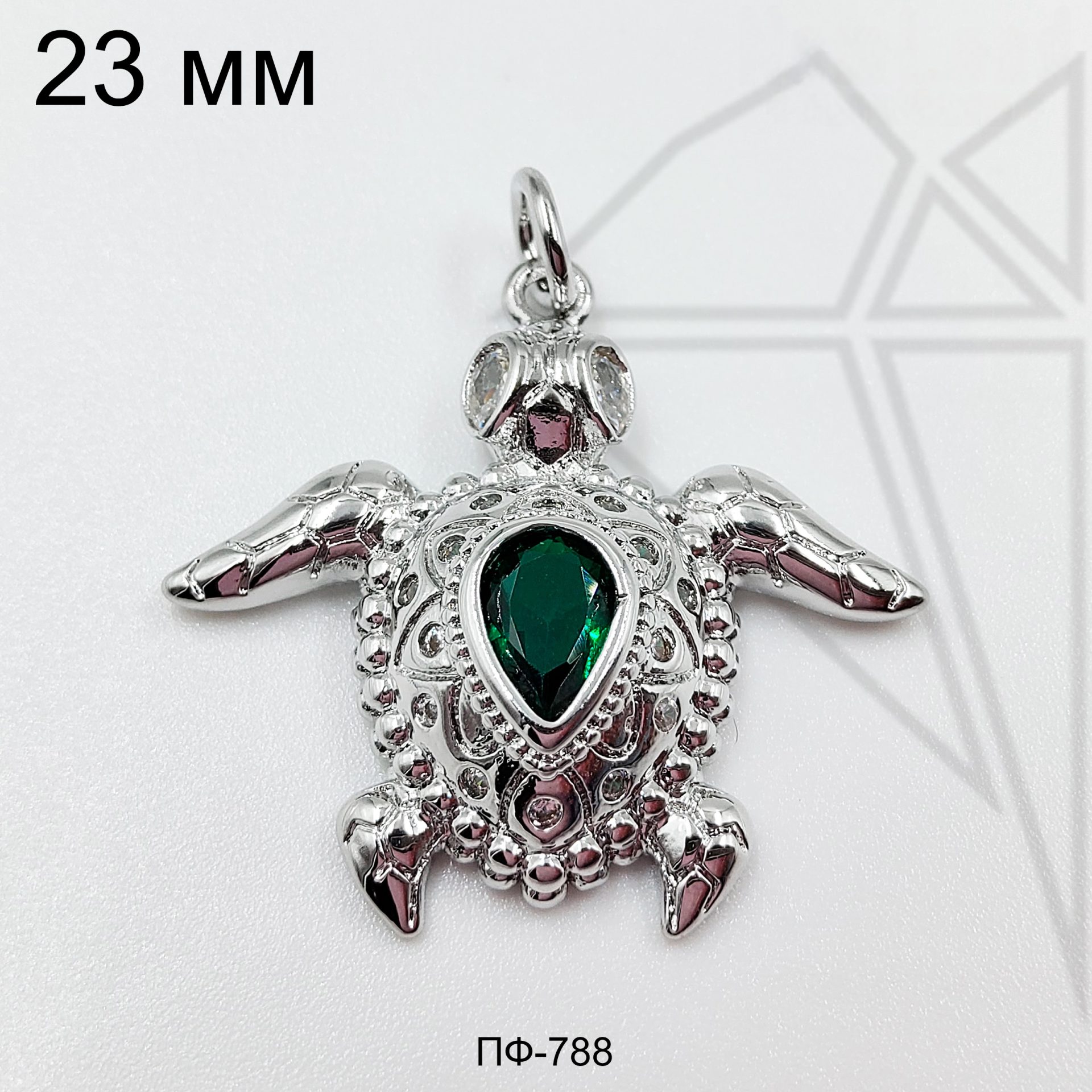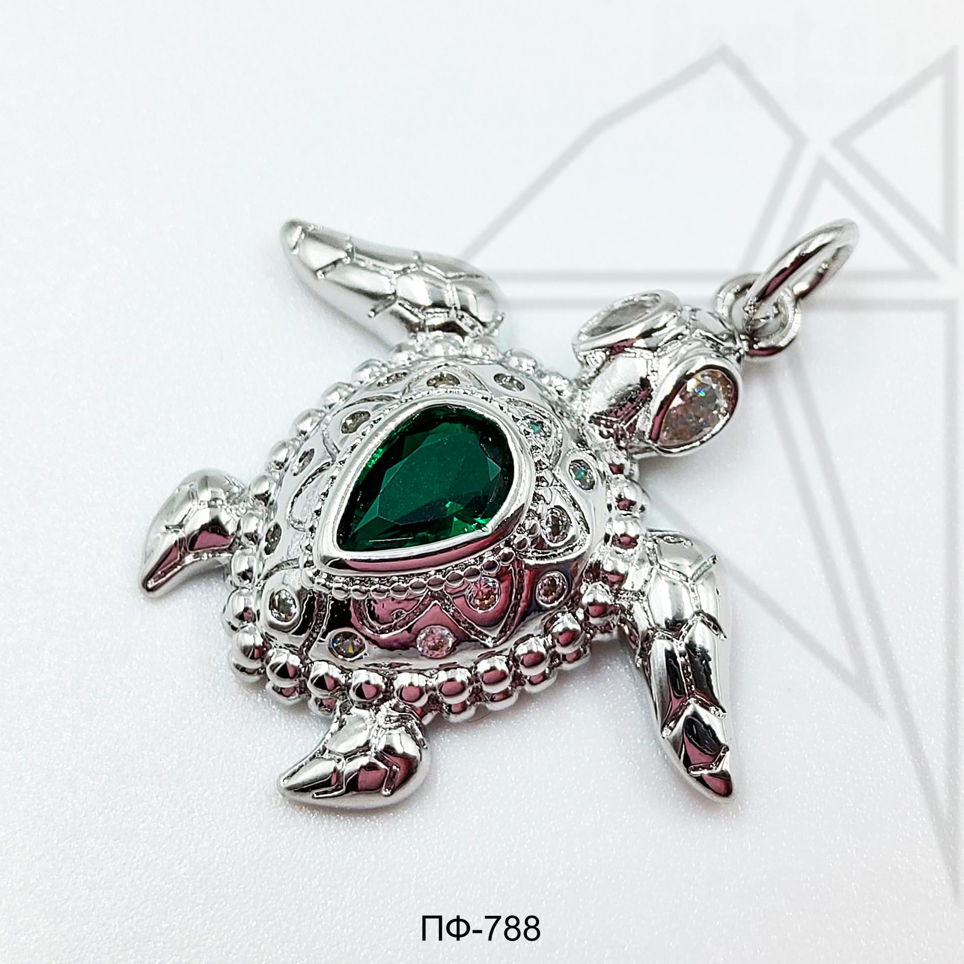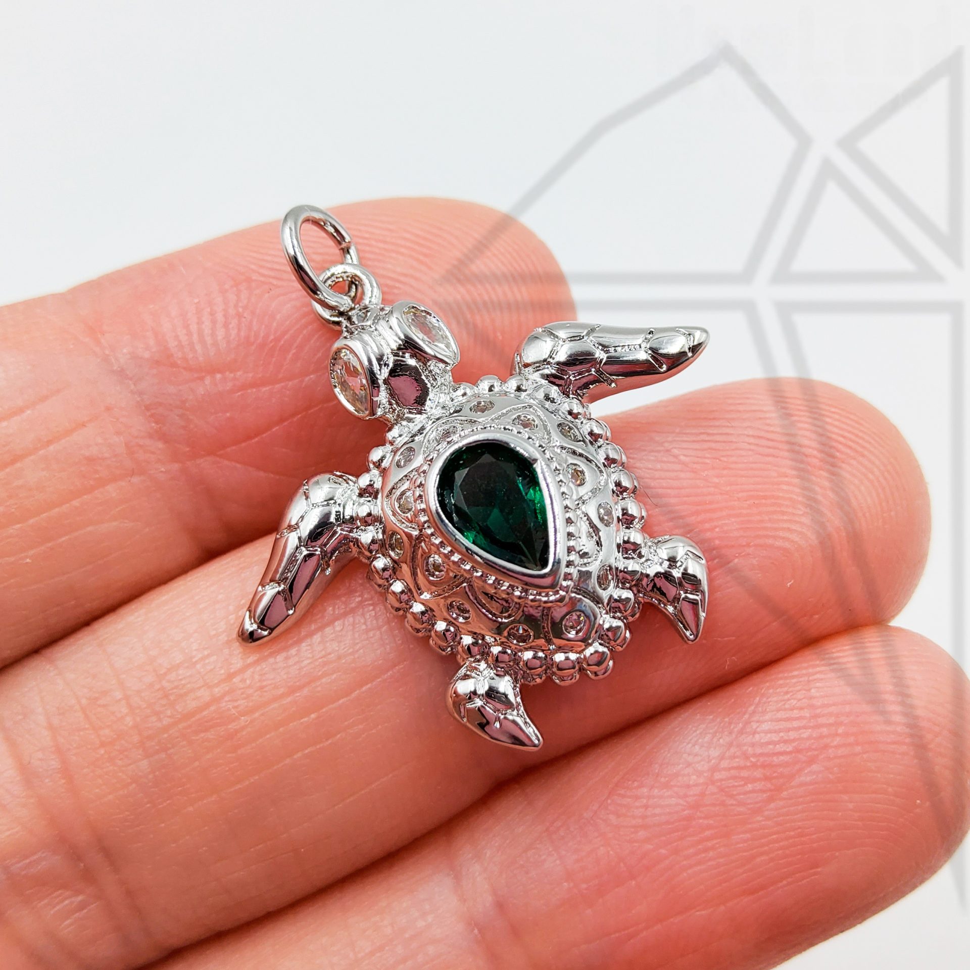Панцирь черепахи инкрустирован крупным зеленым фианитом