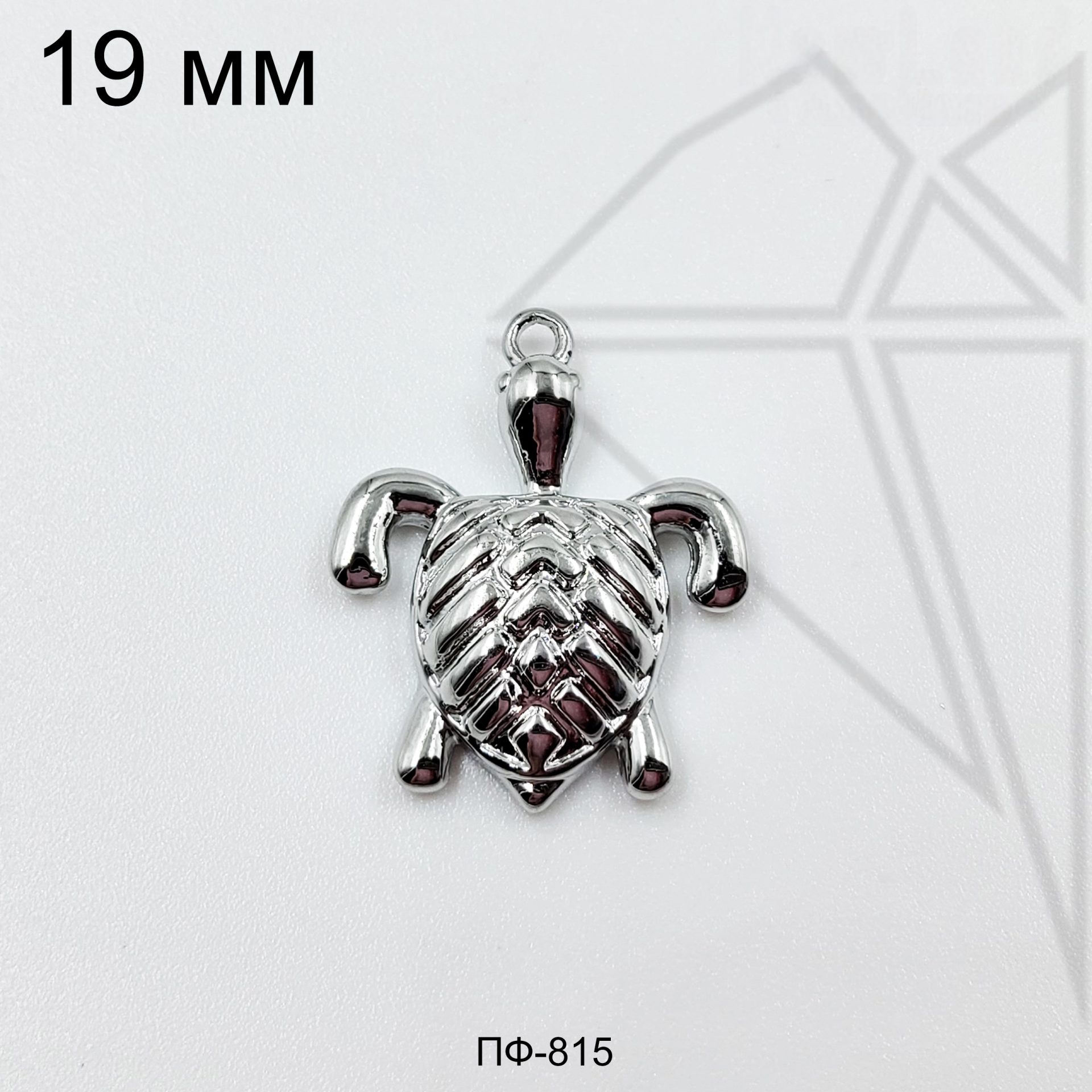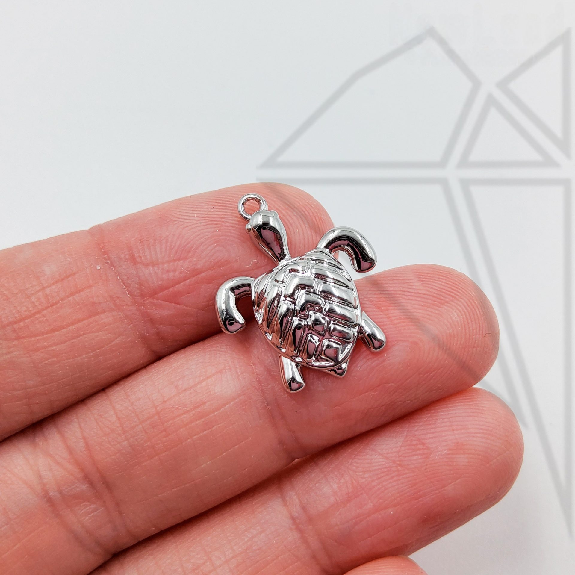 Подвеска черепашка 19 мм класса люкс с родированным покрытием (по латуни).