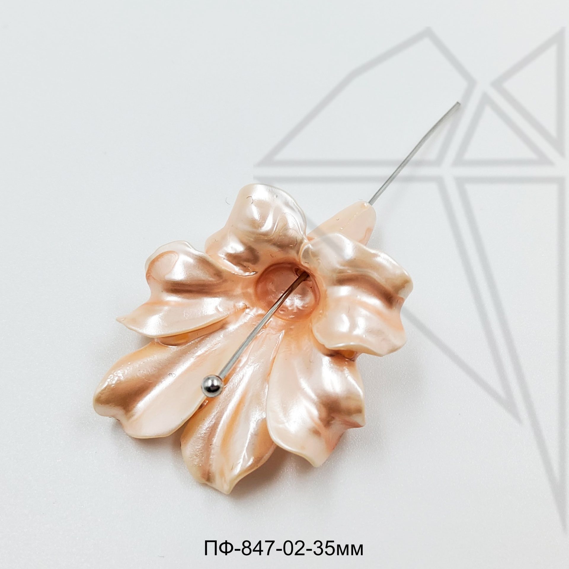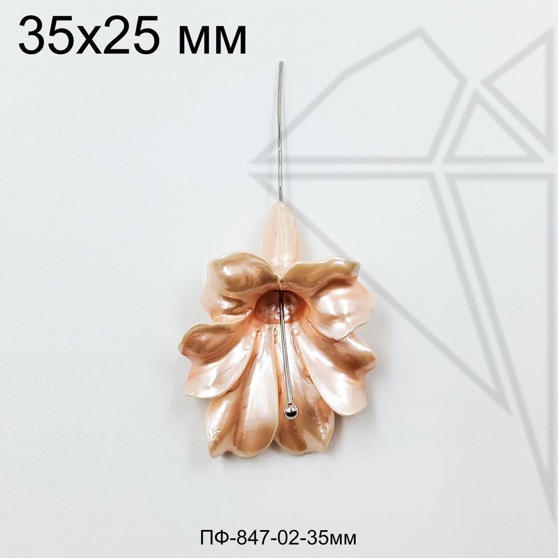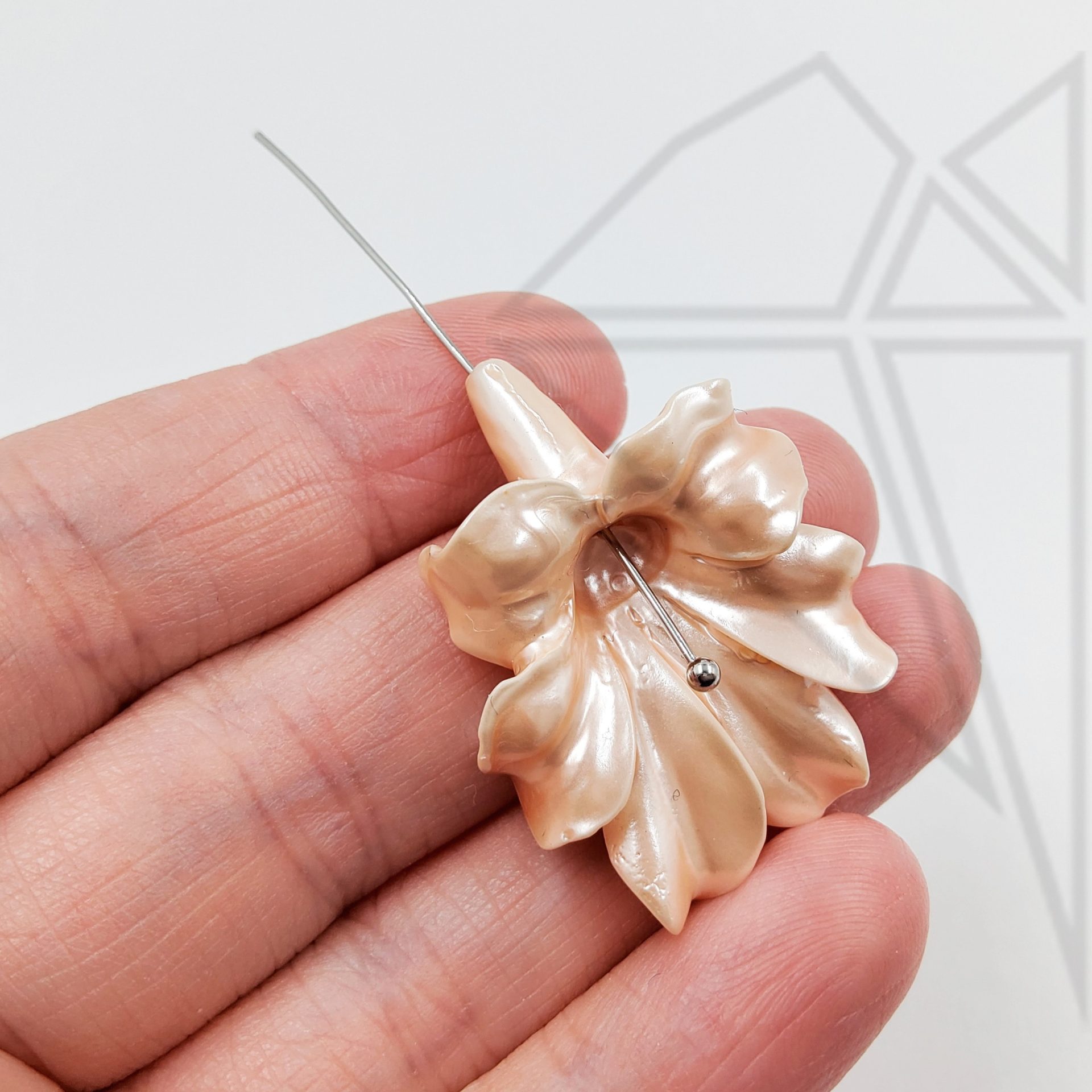 Подвеска в форме цветка из акрила с перламутровым напылением светло-оранжевого (персикового) цвета