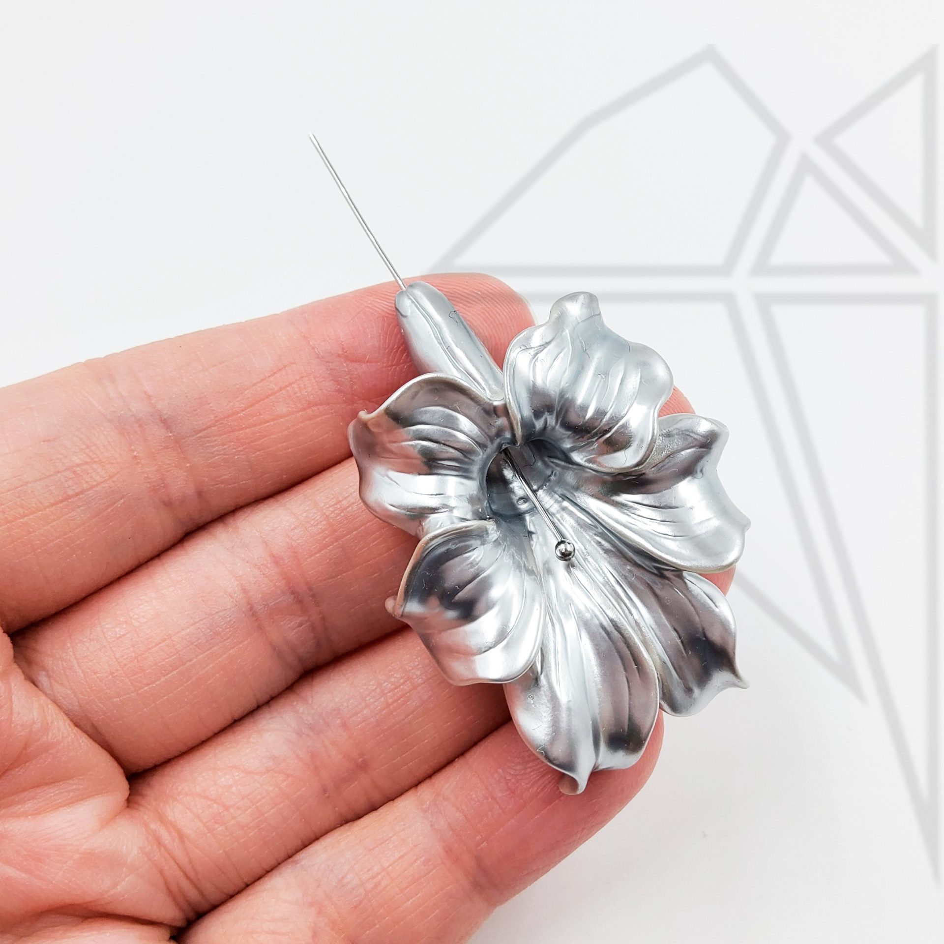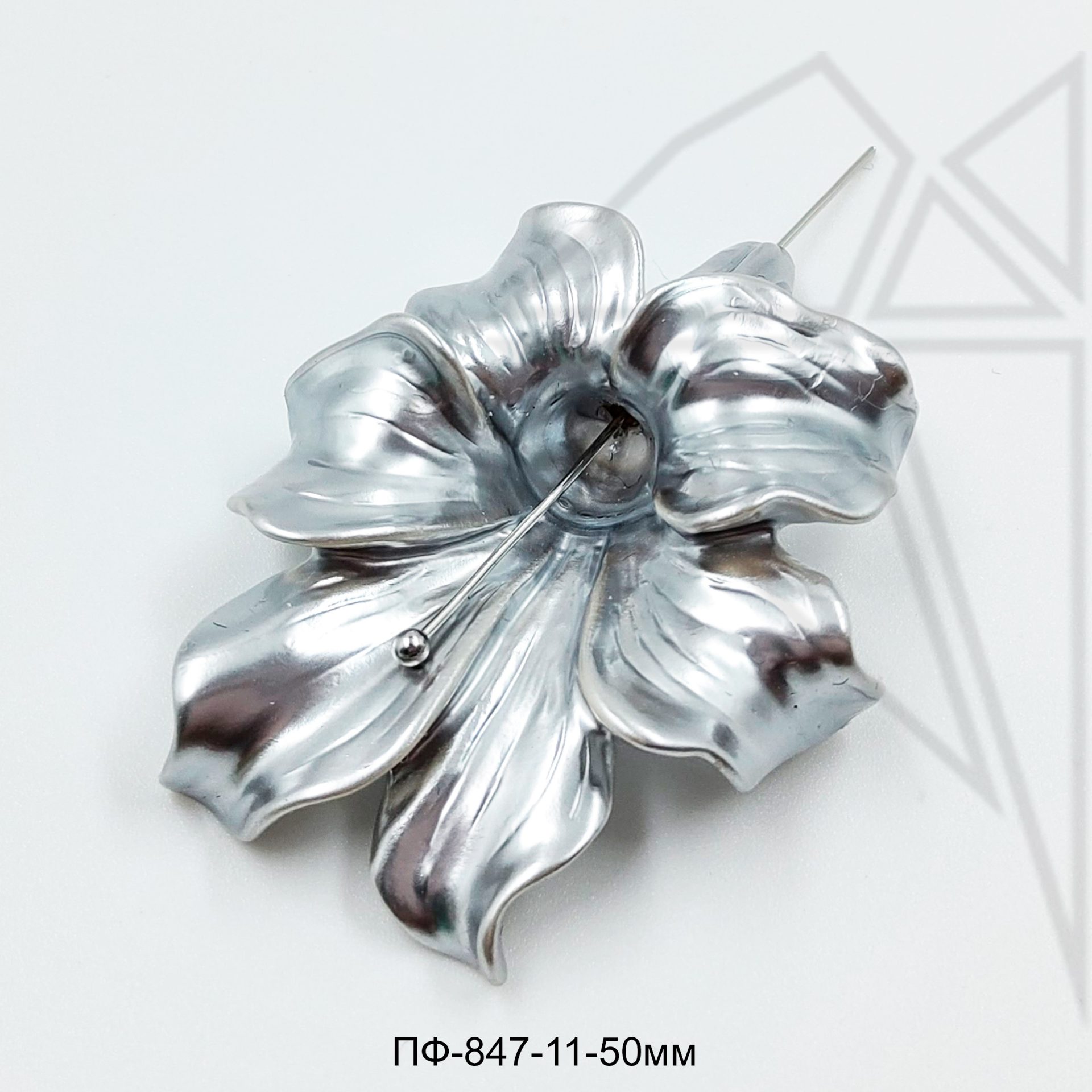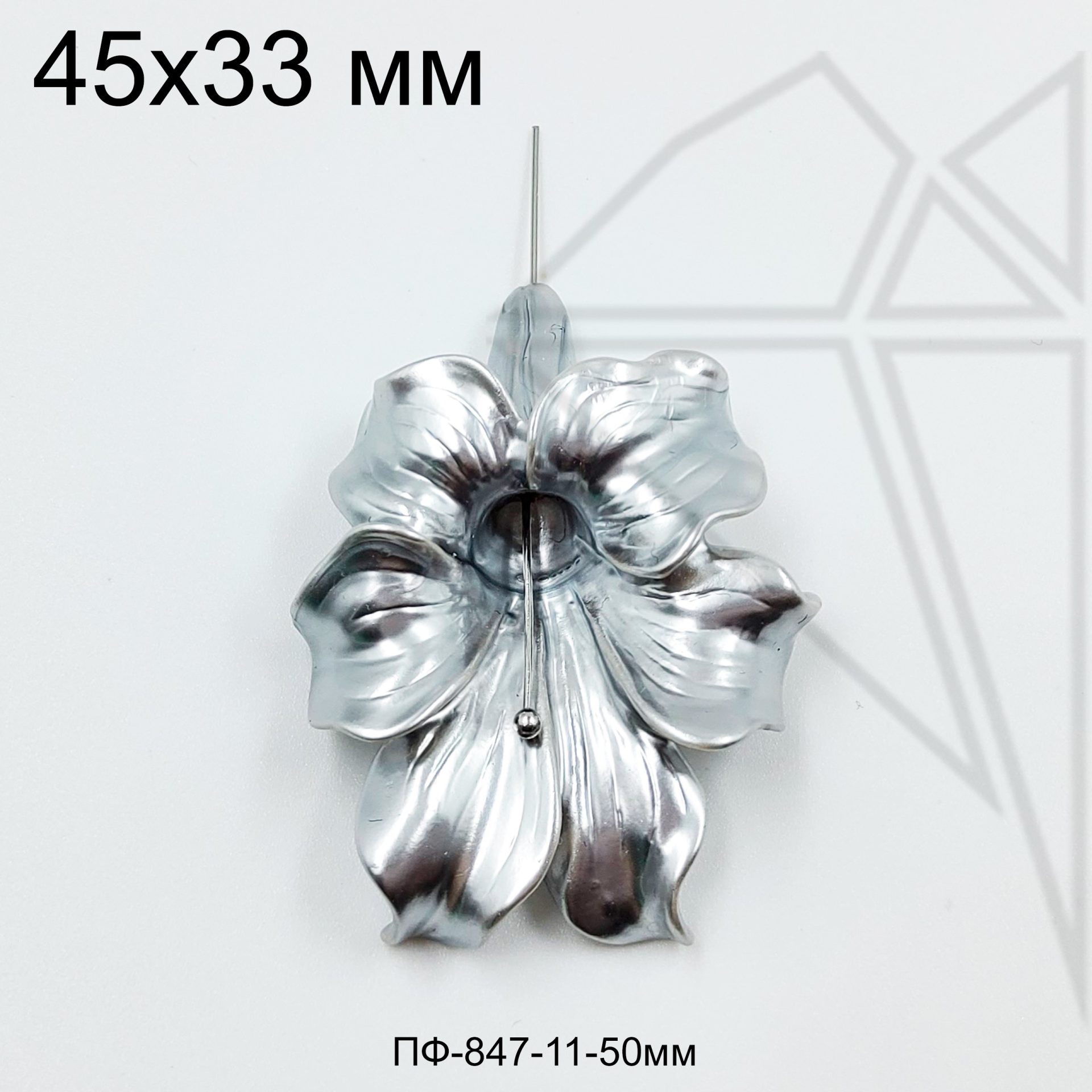 Подвеска в форме цветка из акрила с перламутровым напылением серебристого цвета
