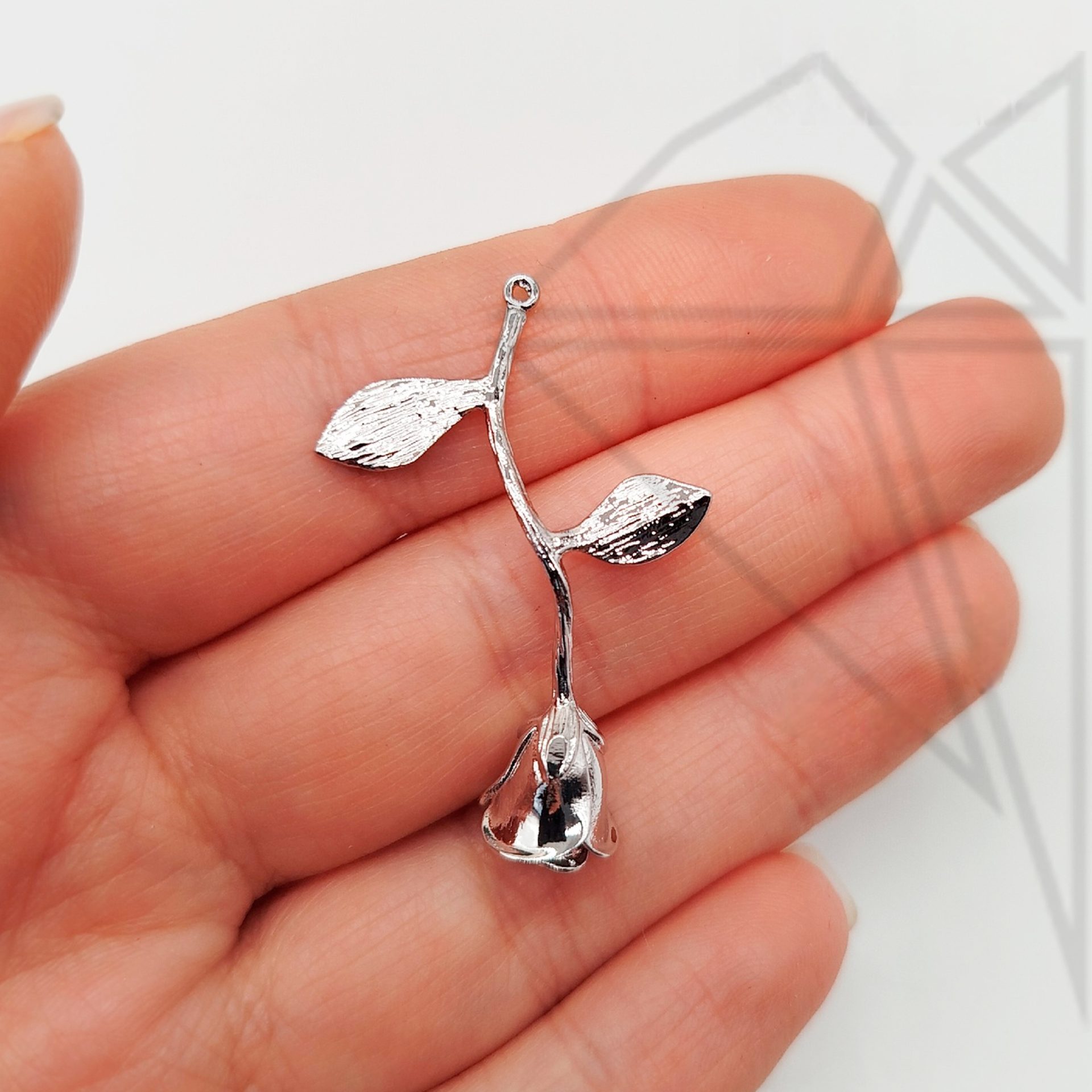 Подвеска цветок розочка 38 мм класса люкс с родированным покрытием (по латуни)