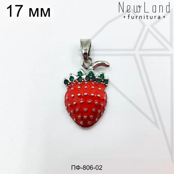 Подвеска в форме клубники покрыта красной эмалью класса люкс с родированным покрытием (по латуни).