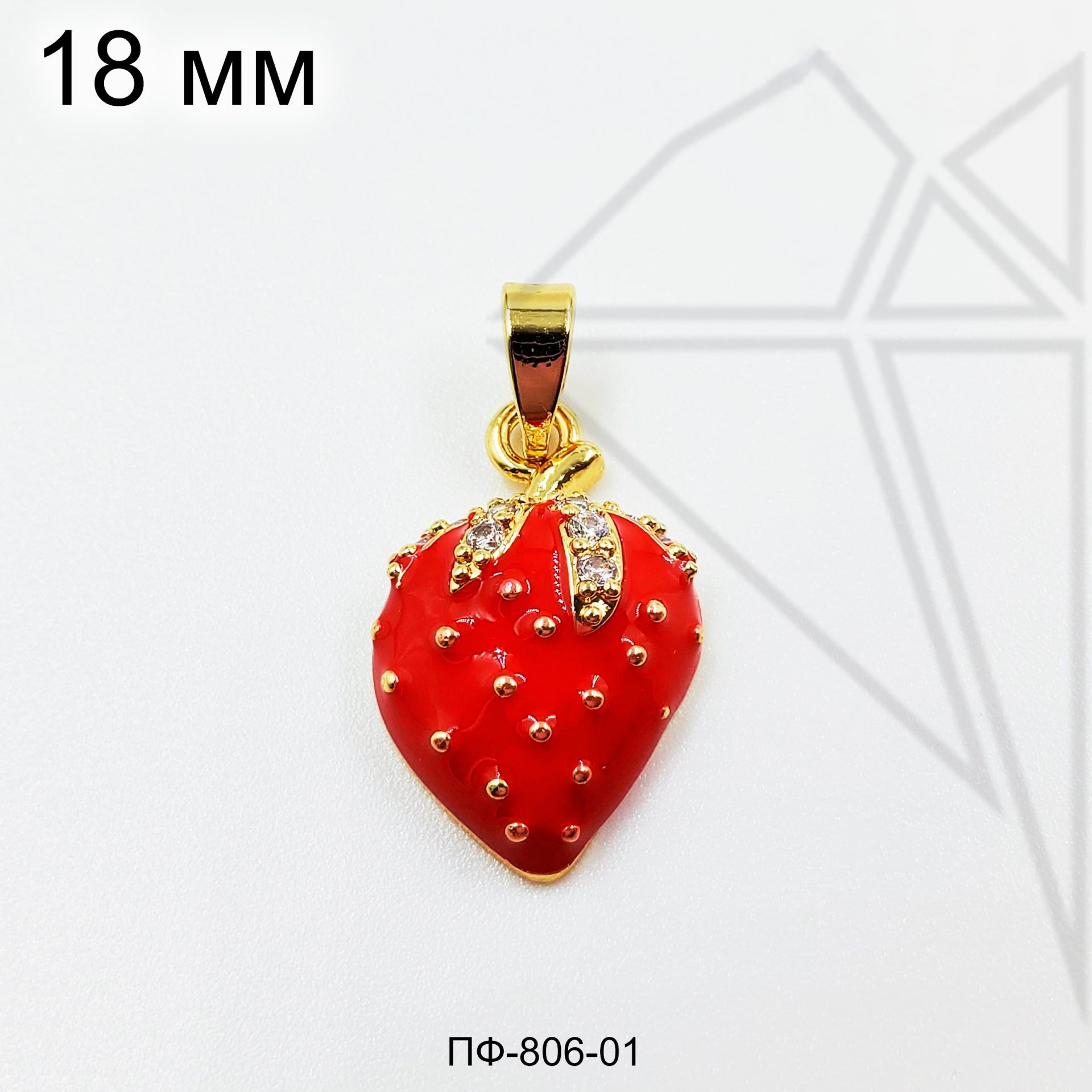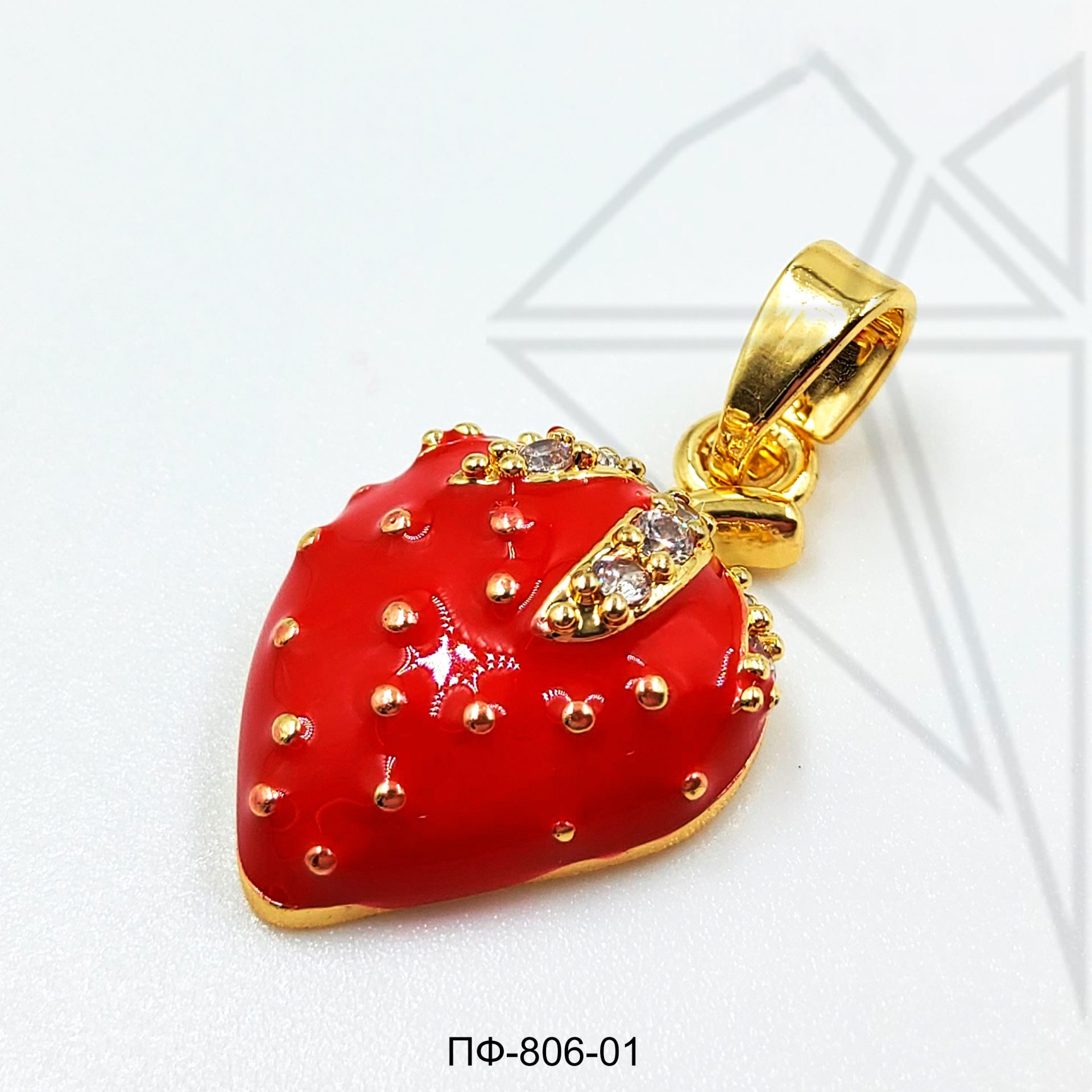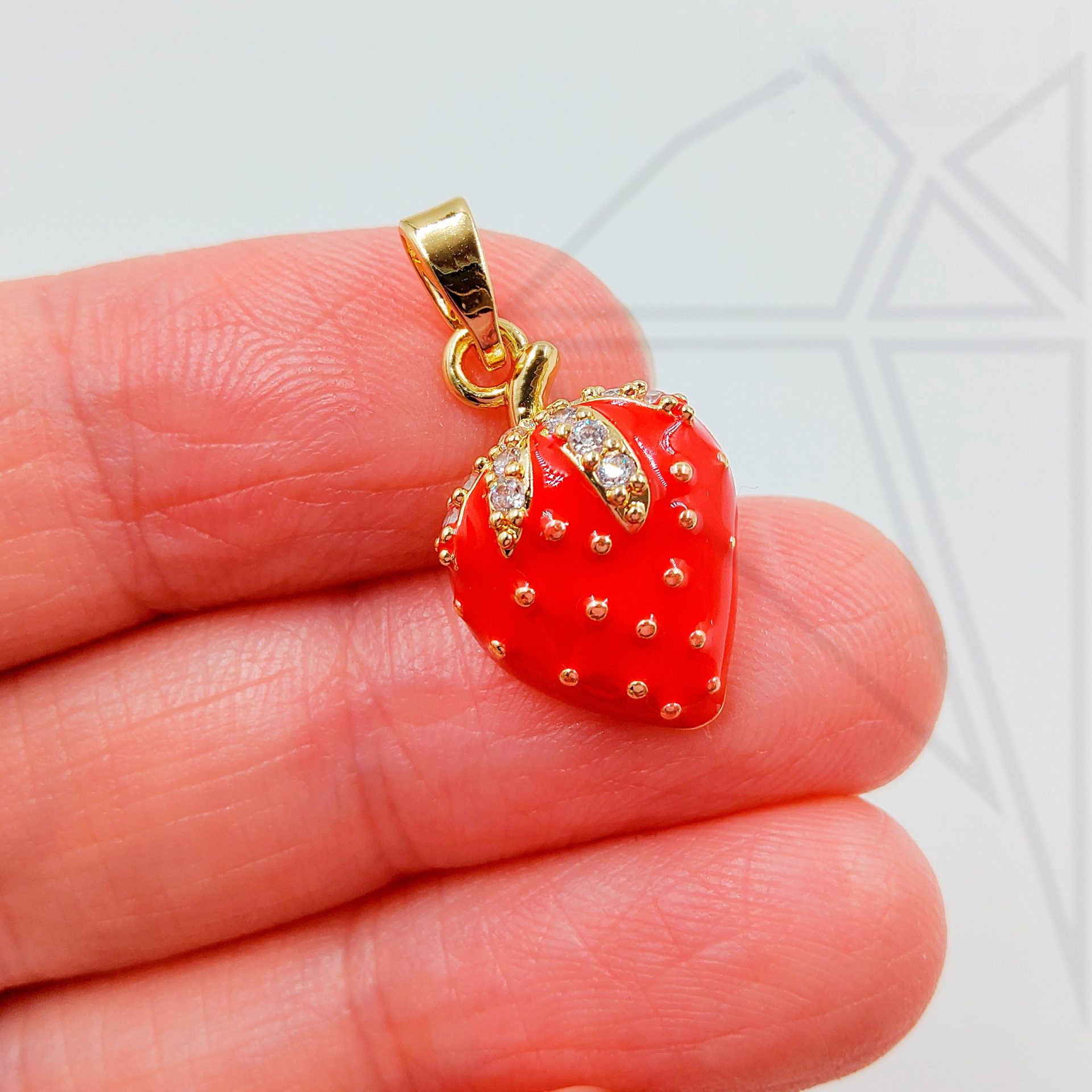 Подвеска в форме клубники покрыта красной эмалью класса люкс с позолоченным покрытием (по латуни)