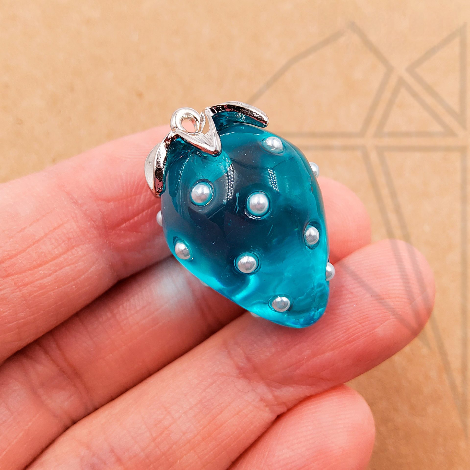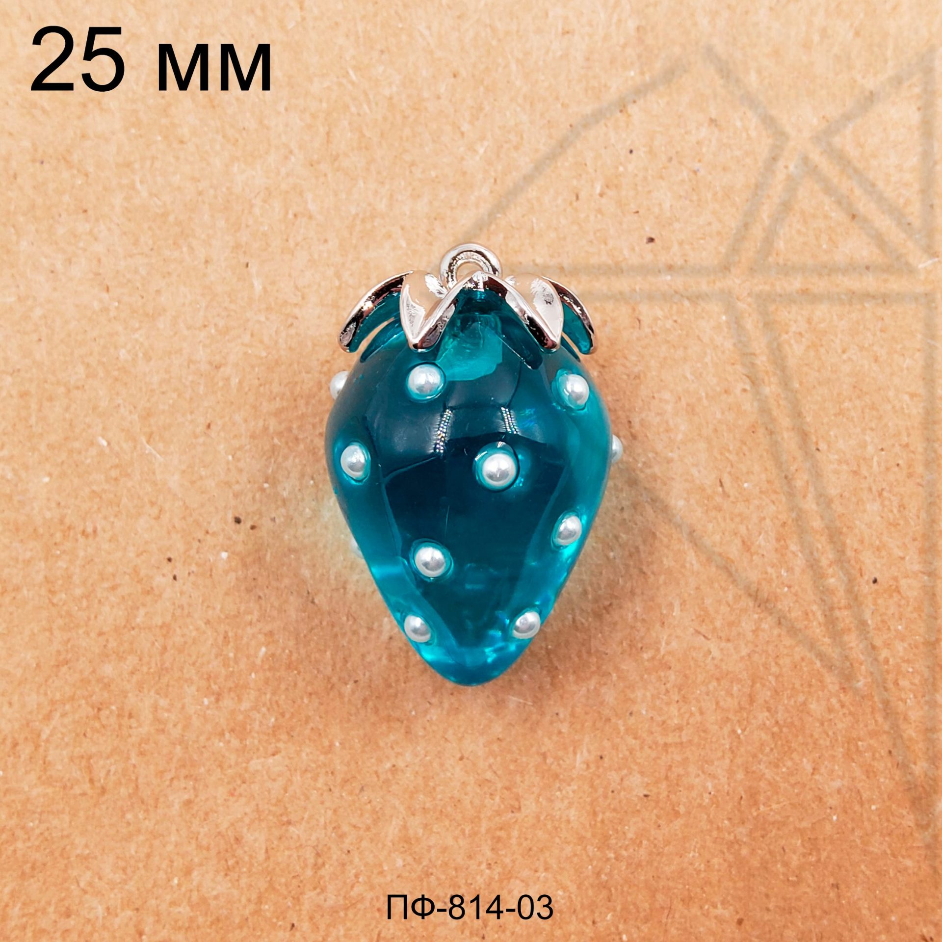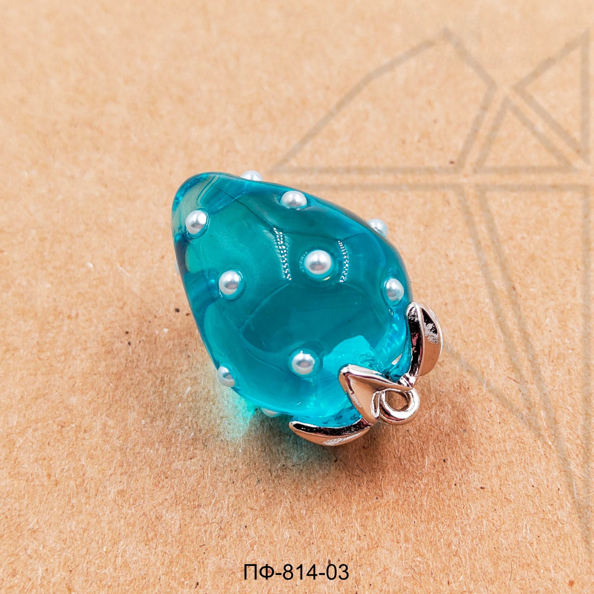 Подвеска стеклянная в форме клубники голубого цвета класса люкс с родированным покрытием (по латуни).