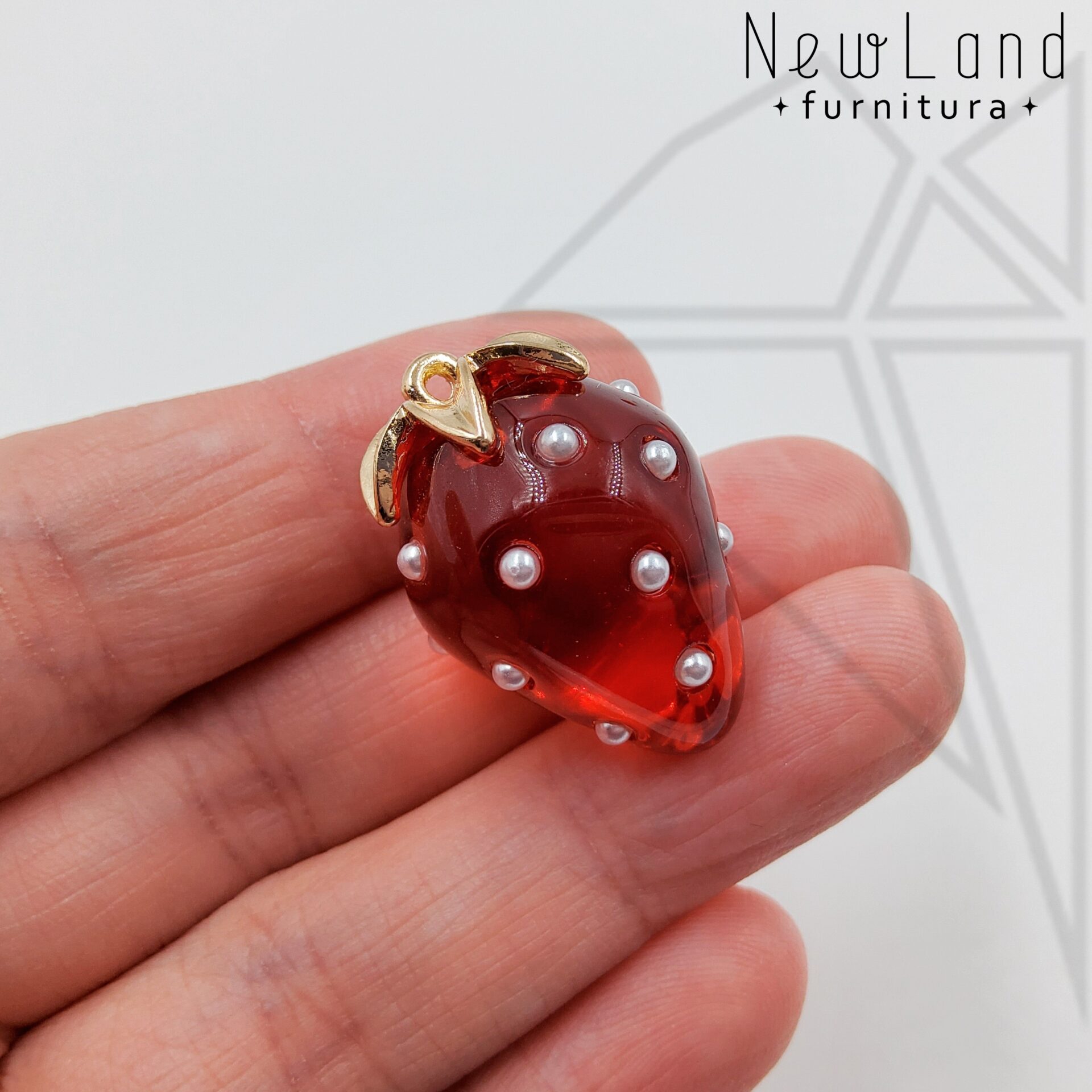 Подвеска стеклянная в форме клубники красного цвета класса люкс с позолоченным покрытием (по латуни).