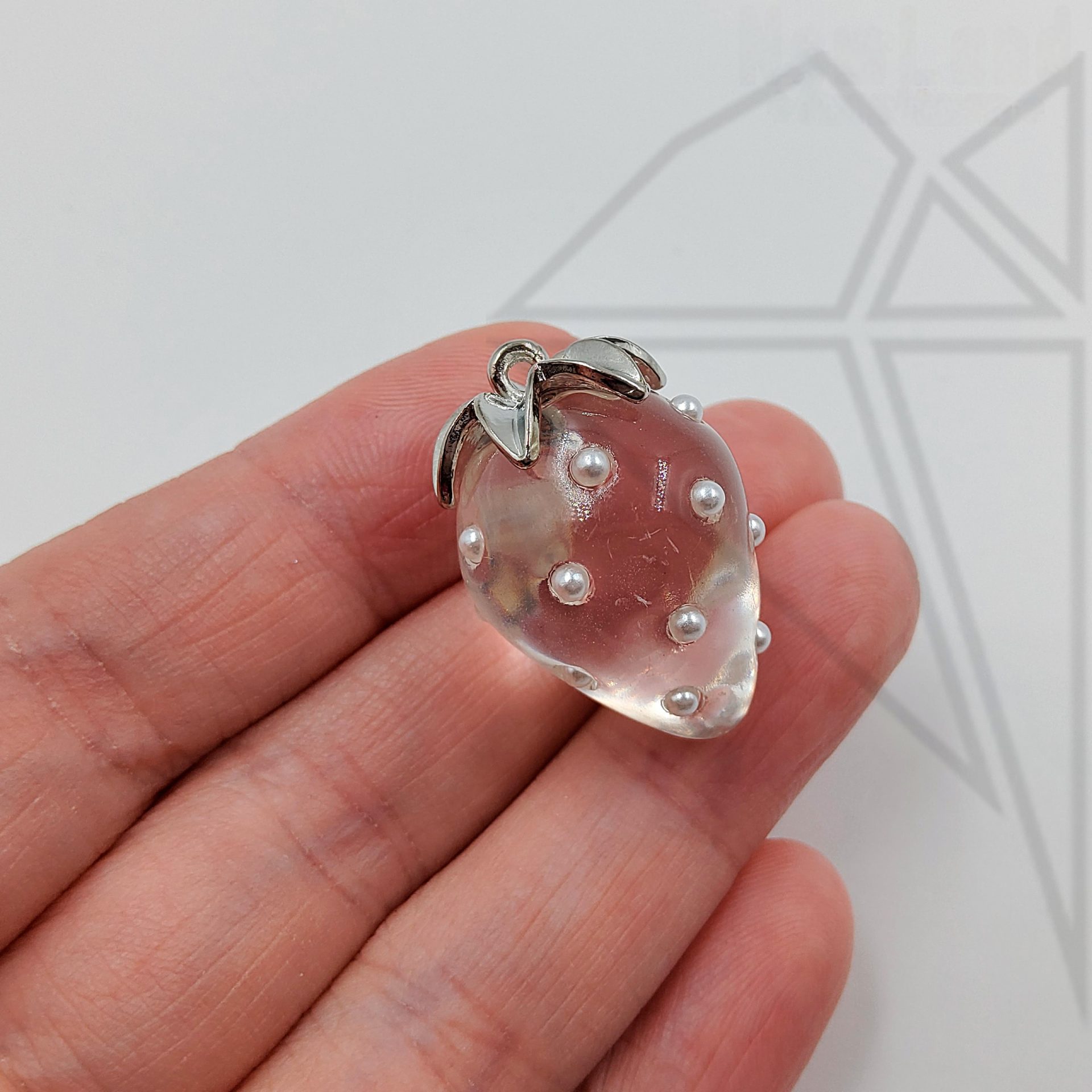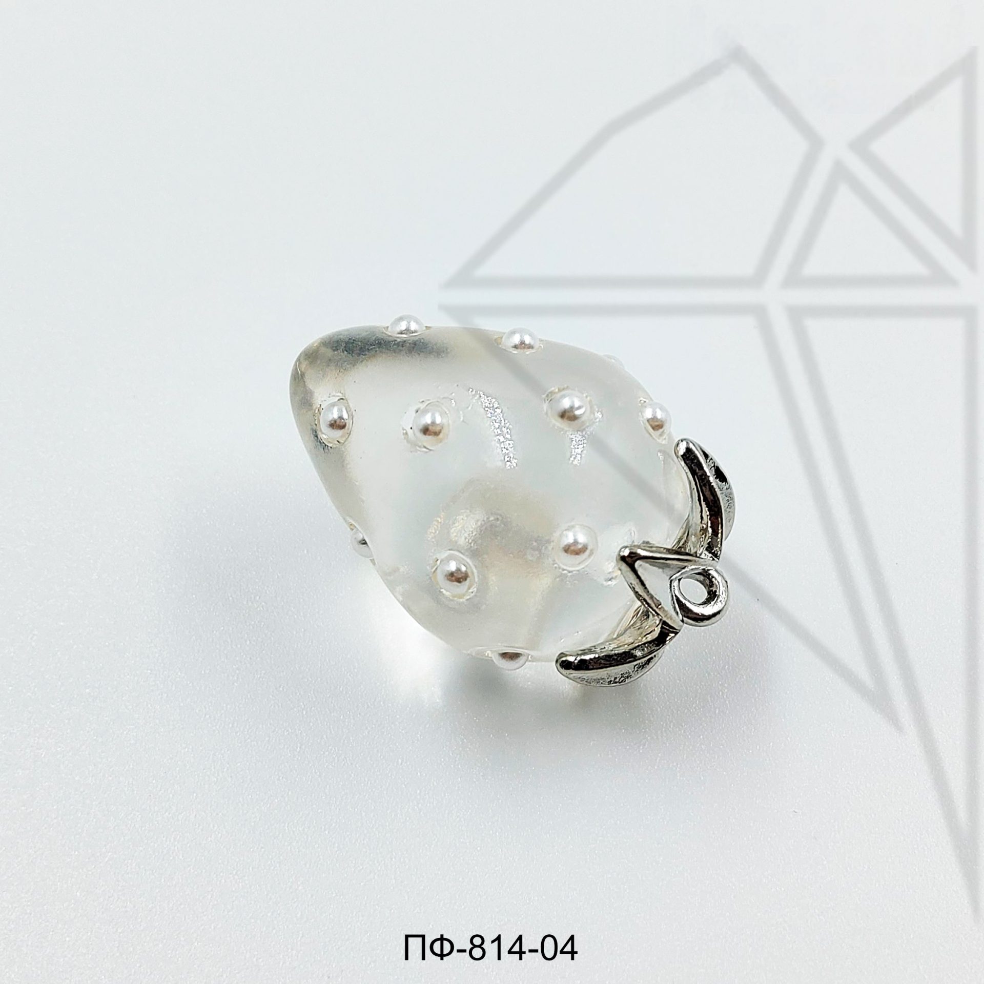 Подвеска стеклянная в форме клубники прозрачного цвета класса люкс с родированным покрытием (по латуни).