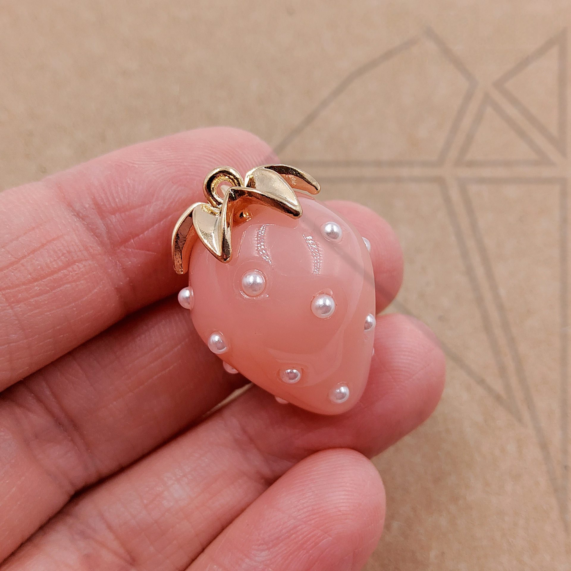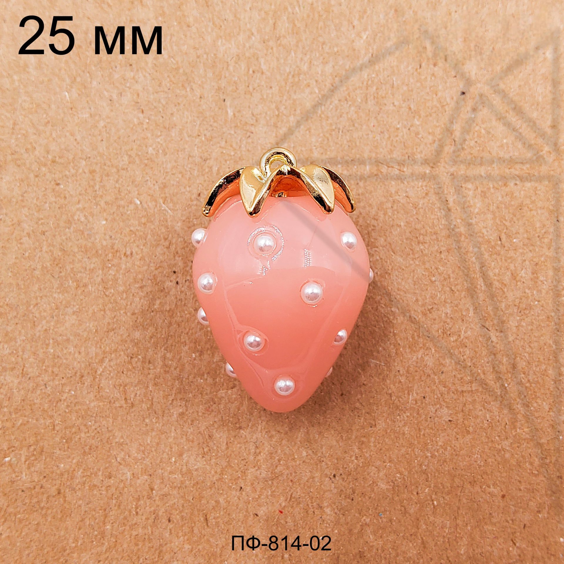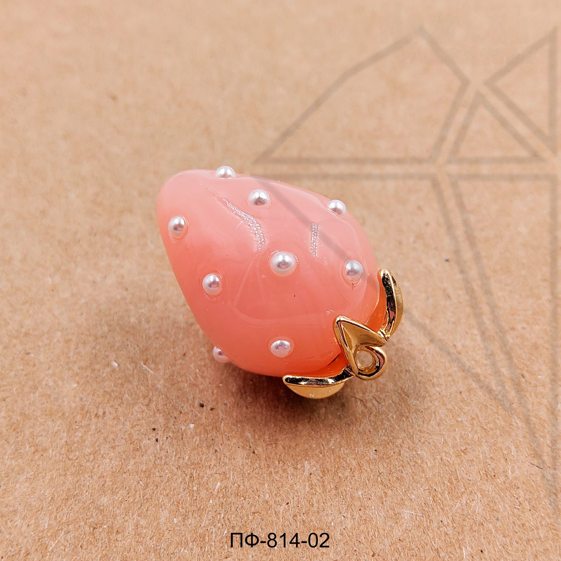 Подвеска стеклянная в форме клубники розового цвета класса люкс с позолоченным покрытием (по латуни).