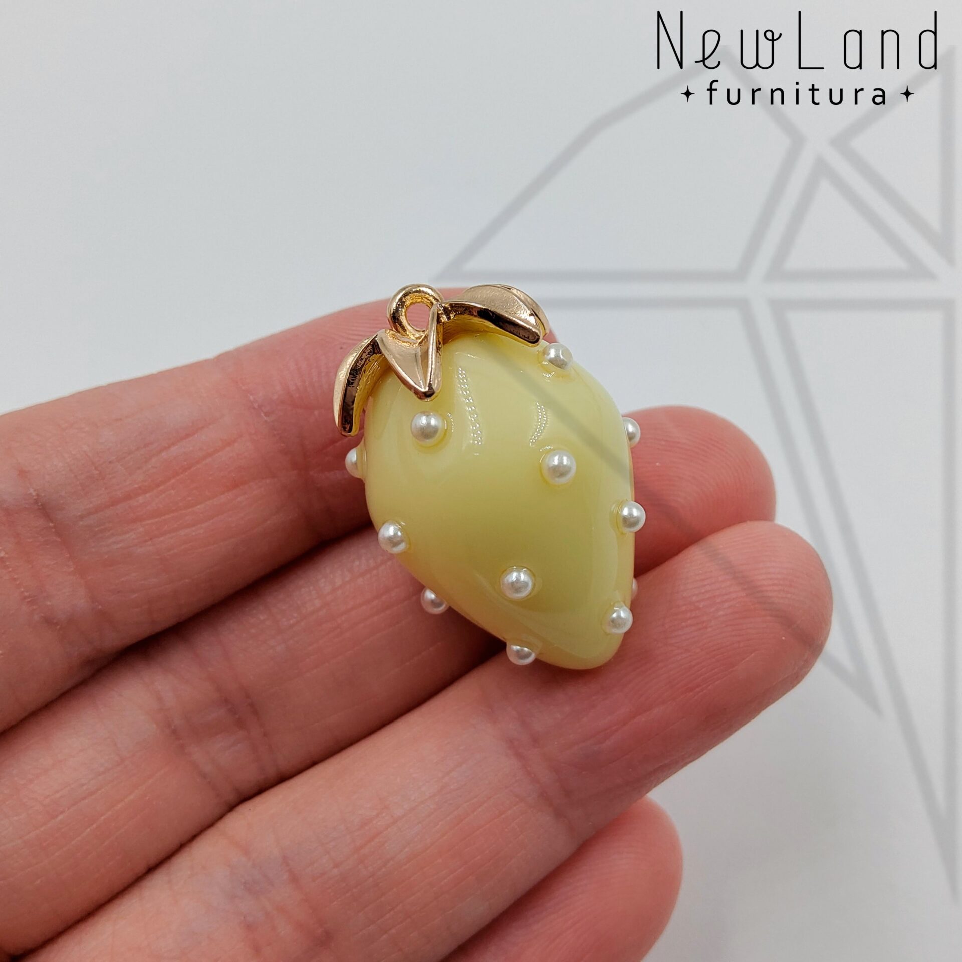 Подвеска стеклянная в форме клубники желтого цвета класса люкс с позолоченным покрытием (по латуни).