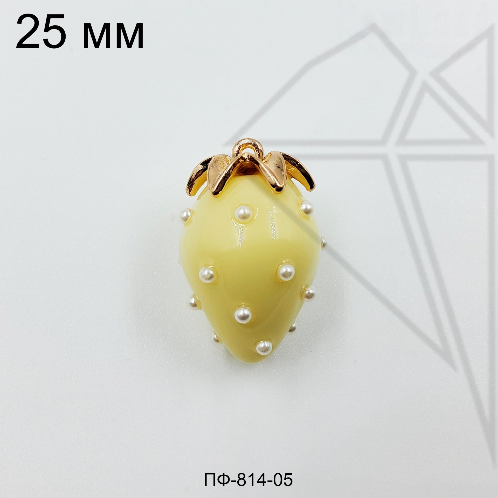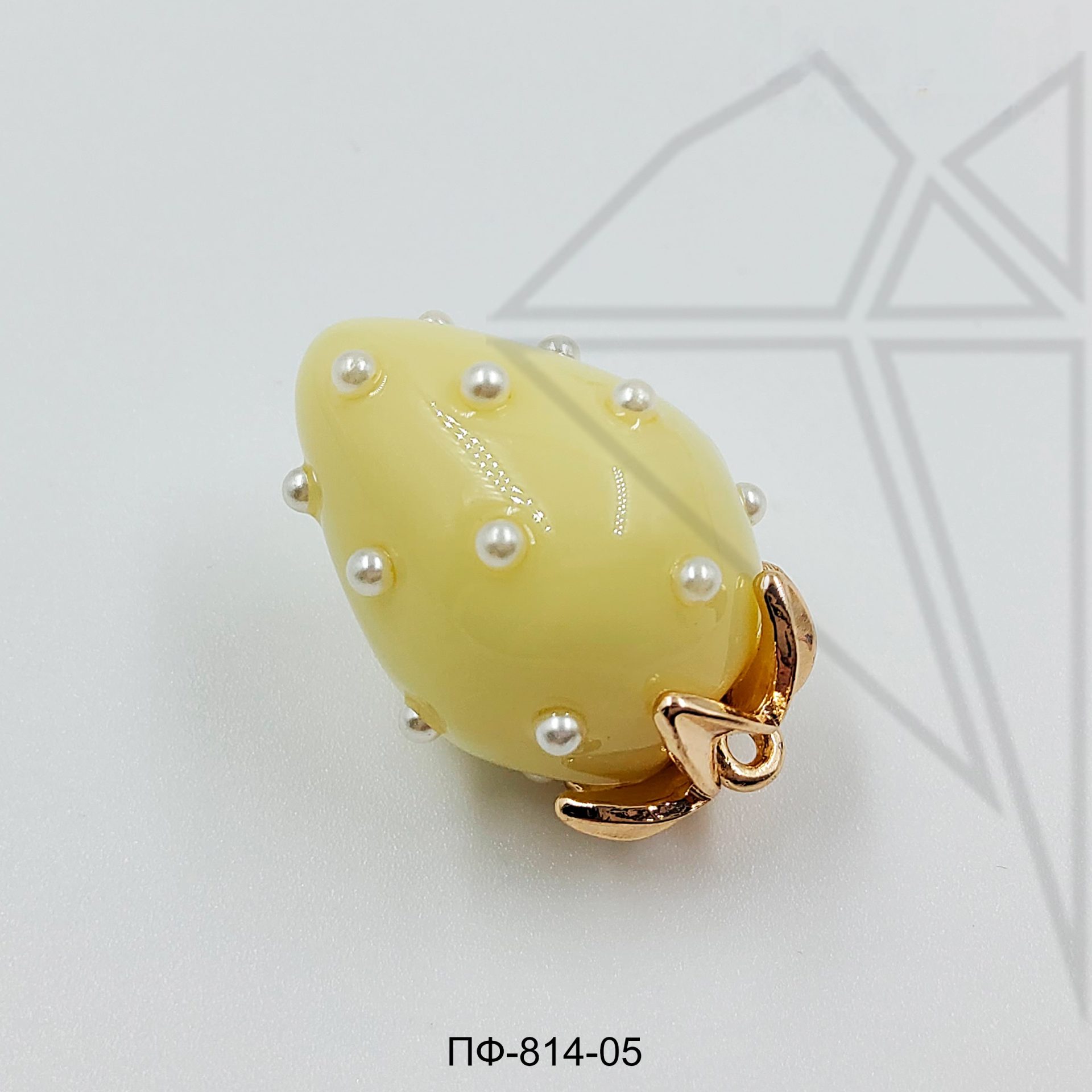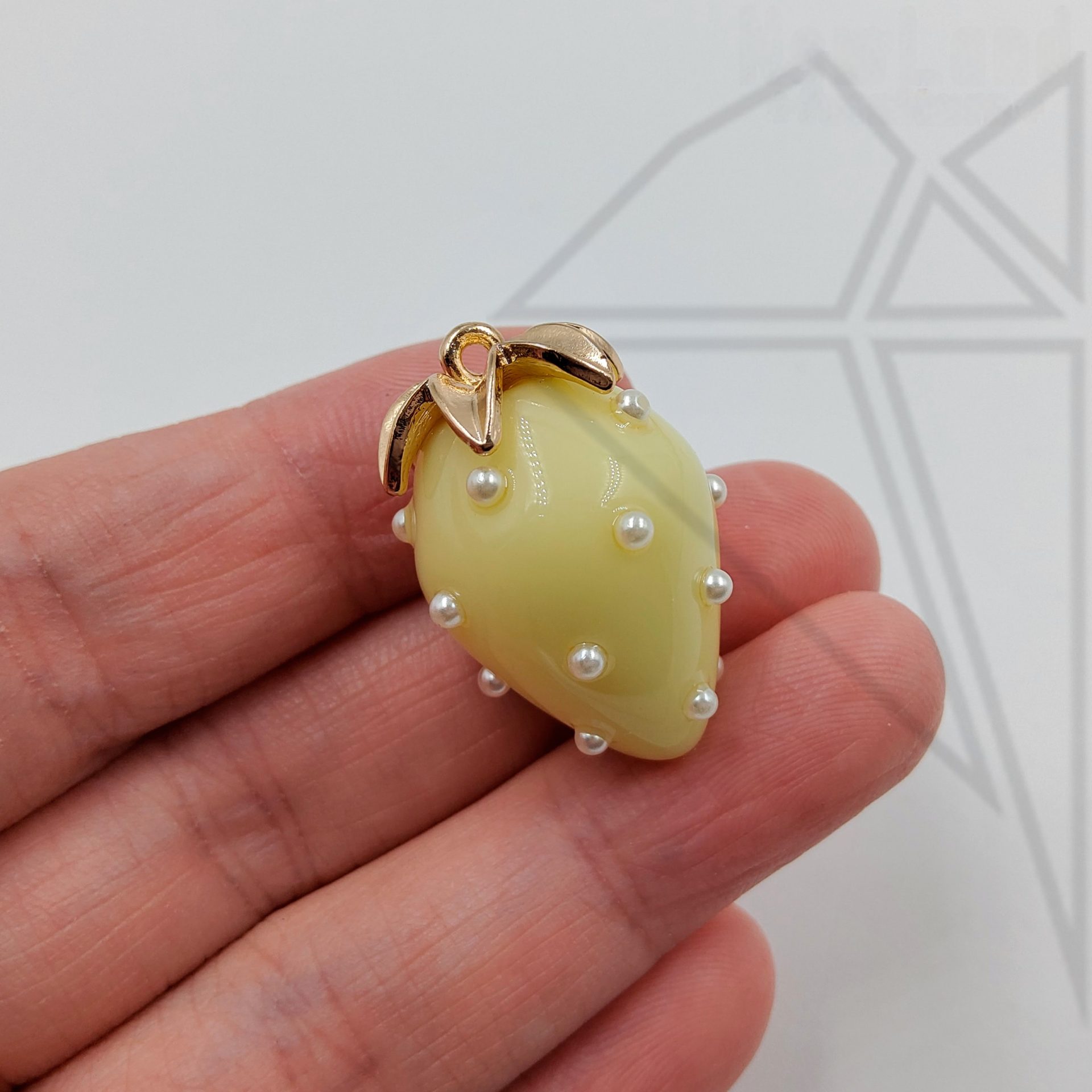 Подвеска стеклянная в форме клубники желтого цвета класса люкс с позолоченным покрытием (по латуни).