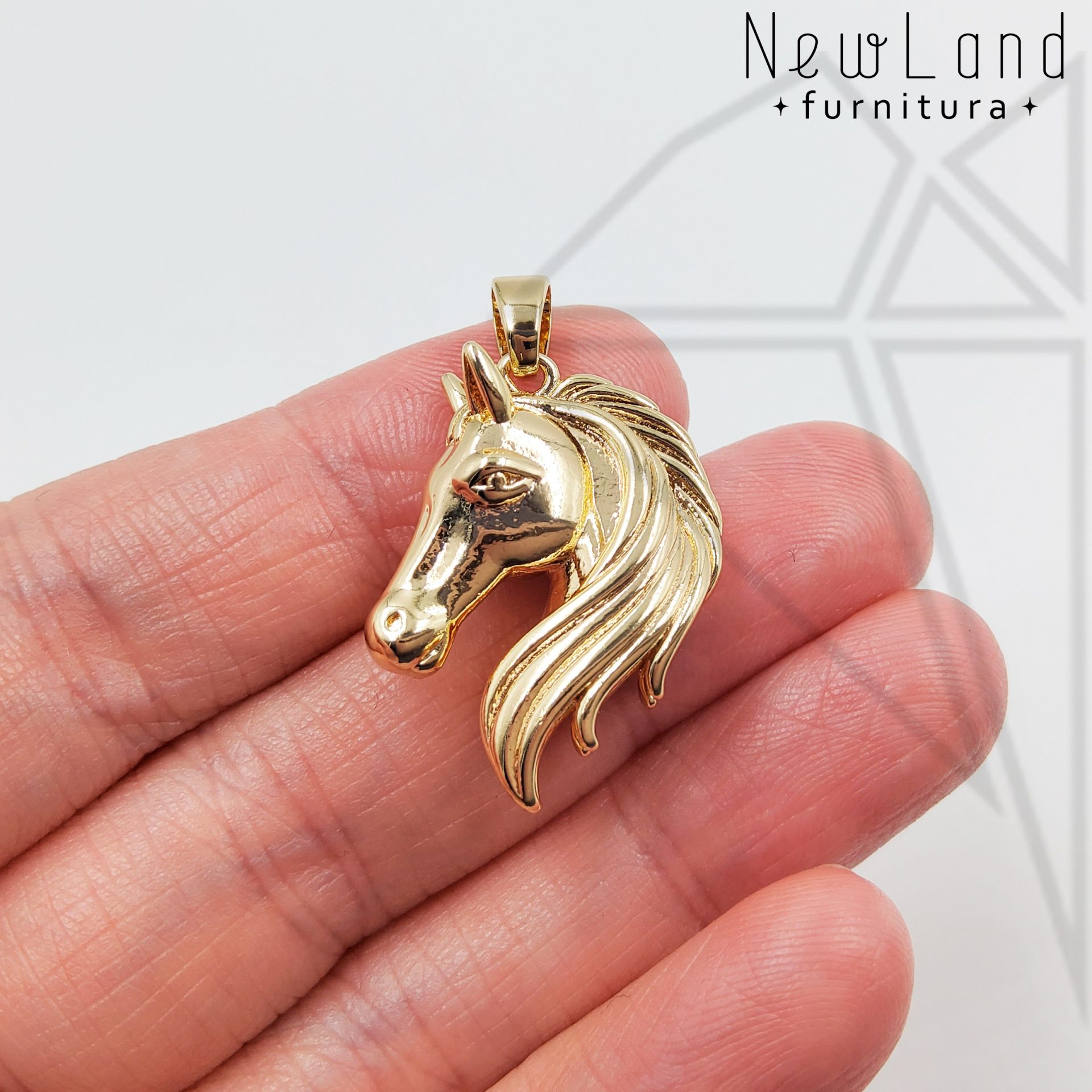 Подвеска голова коня класса люкс с позолоченным покрытием (по латуни)
