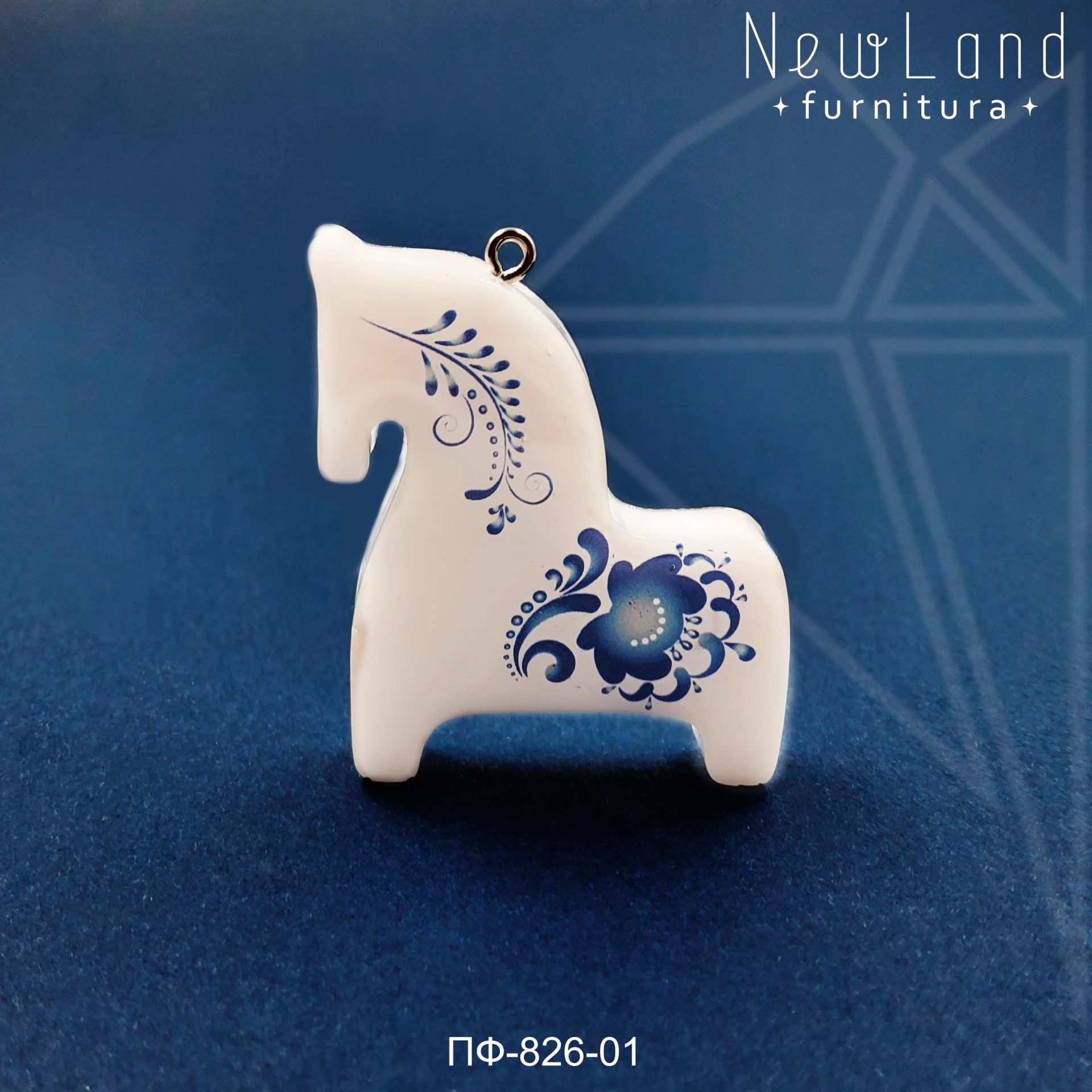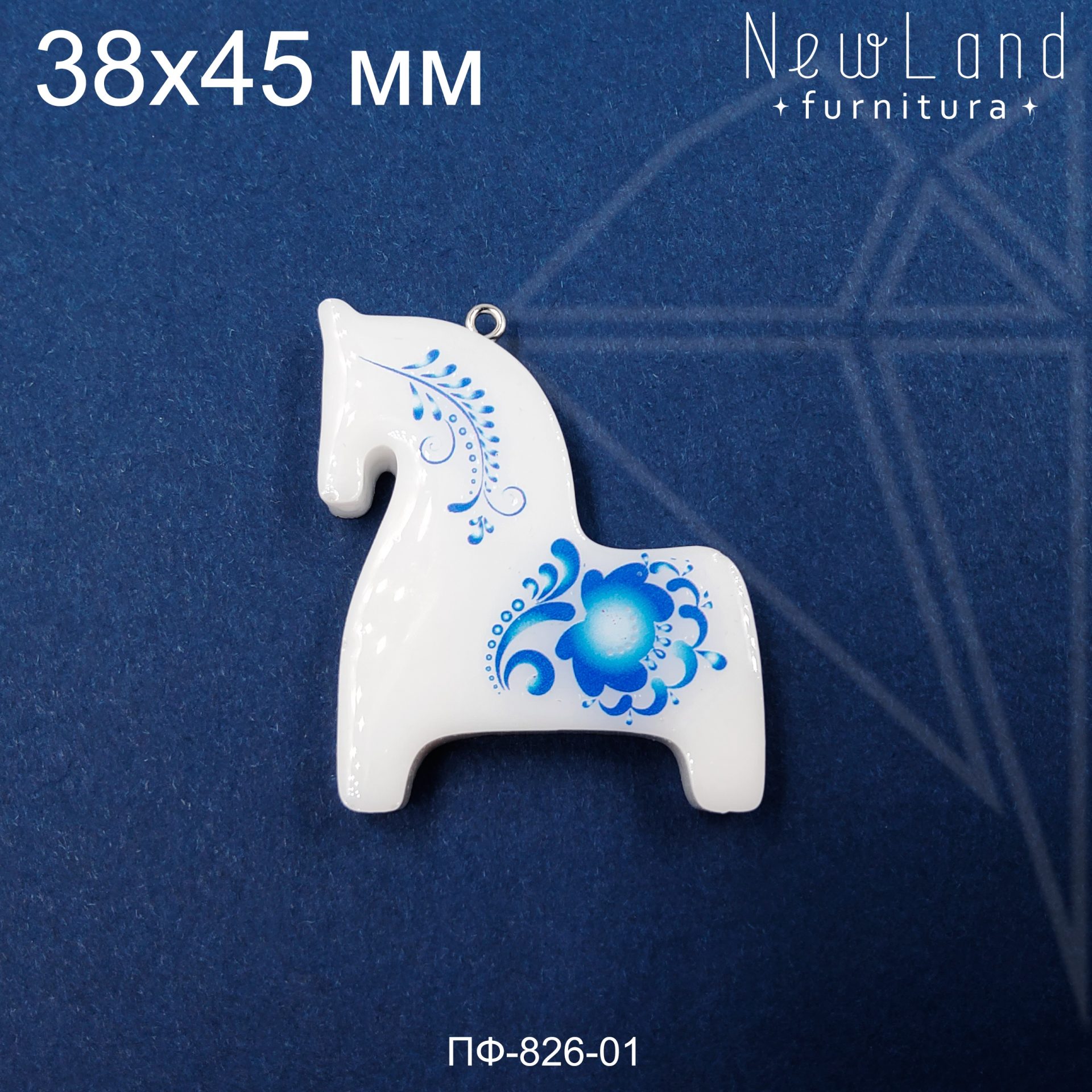Подвеска лошадка Гжель РУЧНОЙ РАБОТЫ выполнена из эпоксидной смолы белого цвета. Подвесное колечко класса люкс родированным покрытием (по латуни)