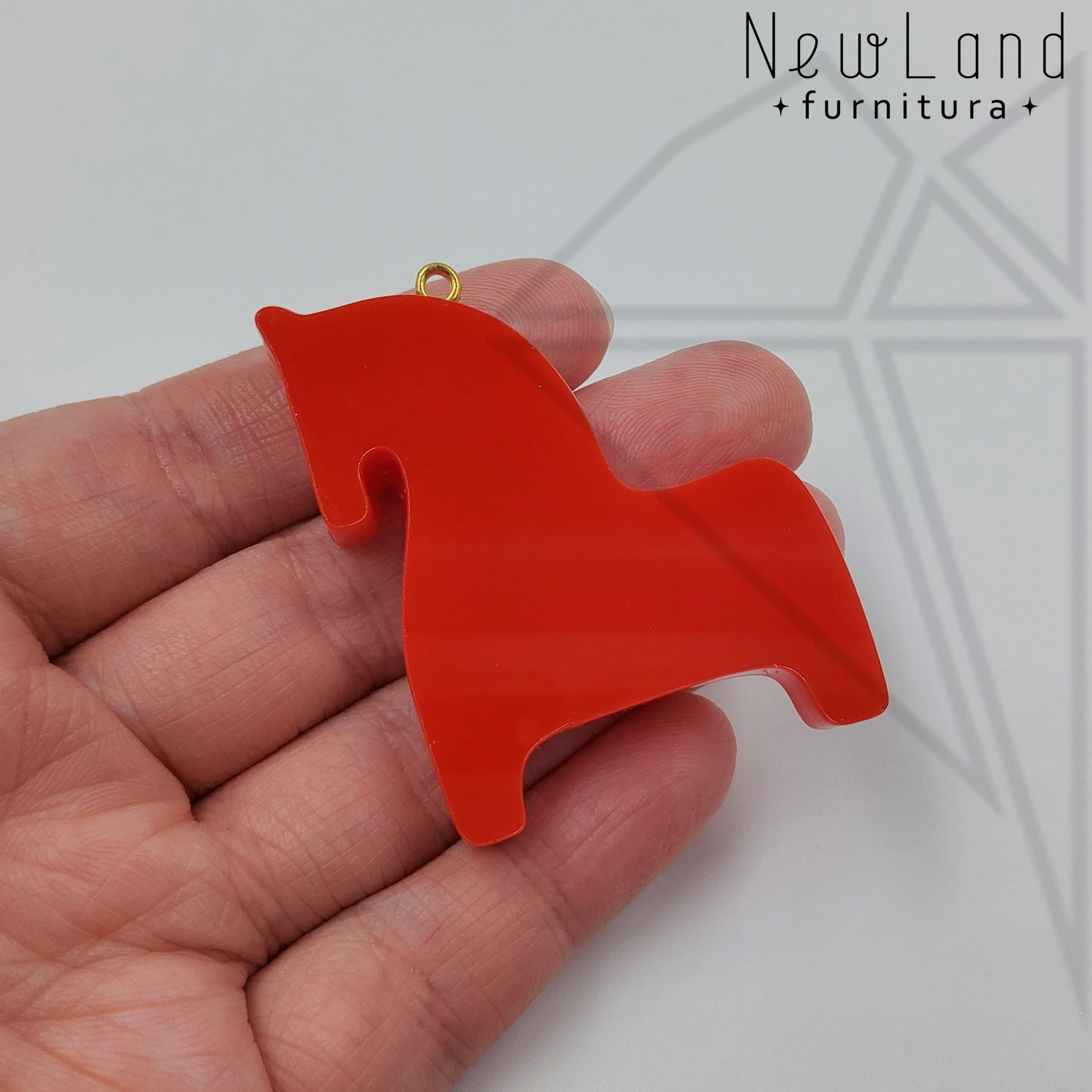 Подвеска лошадка Гжель РУЧНОЙ РАБОТЫ выполнена из эпоксидной смолы красного цвета. Подвесное колечко класса люкс позолоченным покрытием (по латуни)
