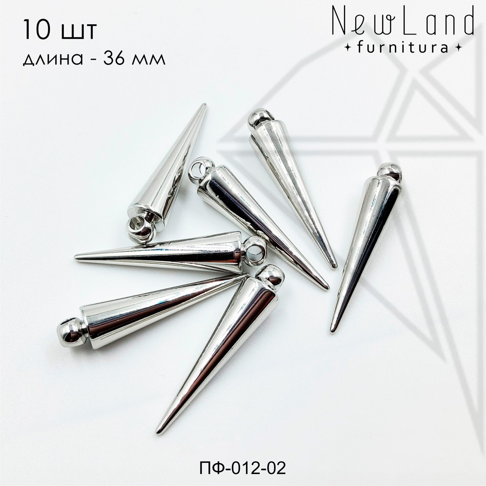 Подвеска конус 36х8 мм люкс класса с родированным покрытием (по латуни).