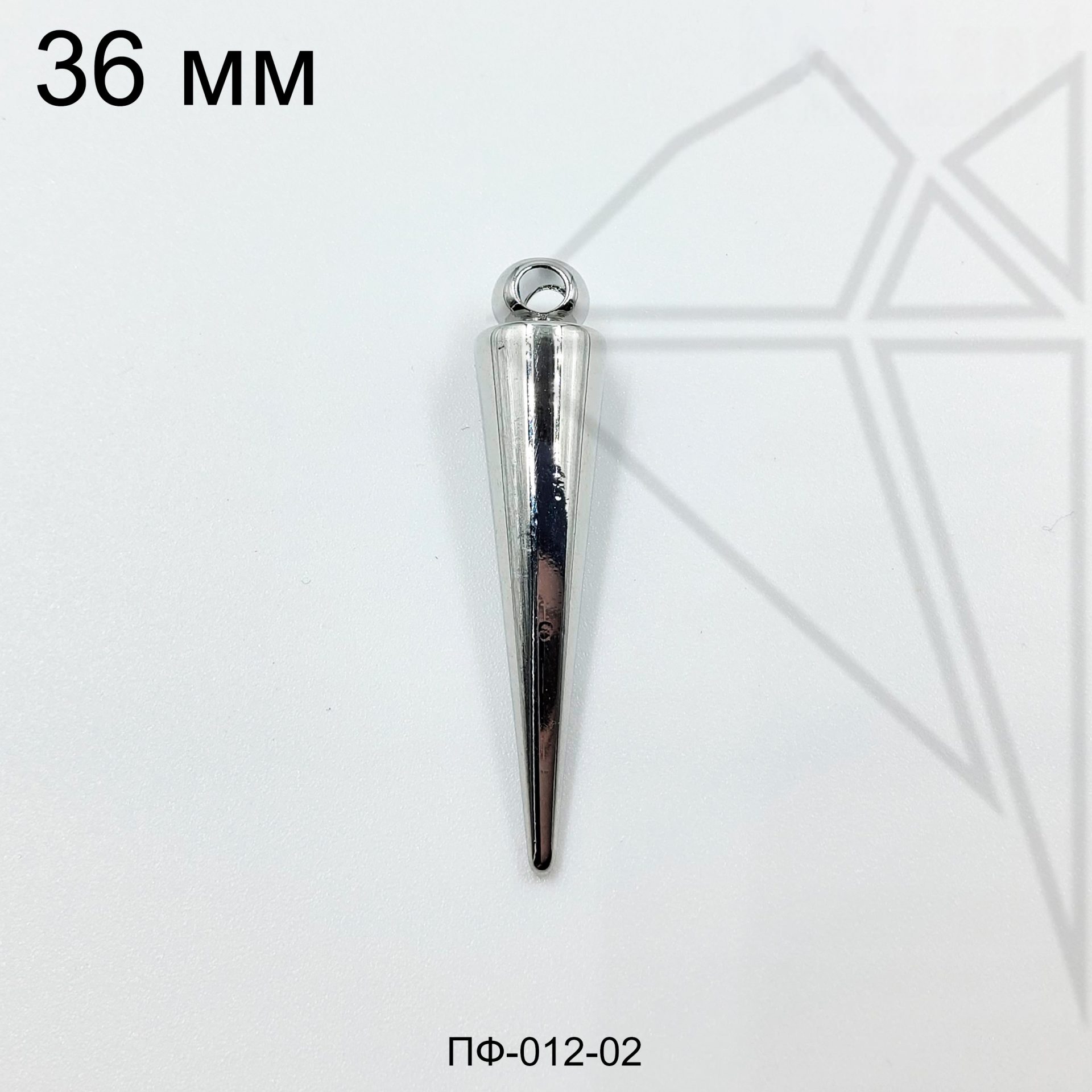 Подвеска конус 36х8 мм люкс класса с родированным покрытием (по латуни).