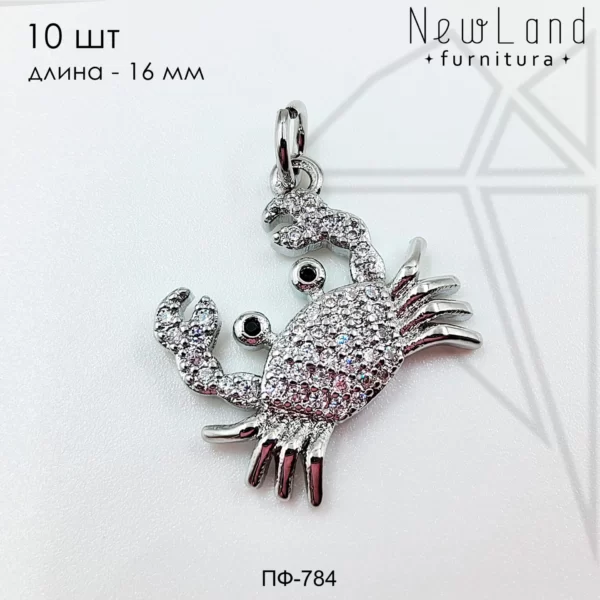 Подвеска краб с фианитами класса люкс с родированным покрытием (по латуни).