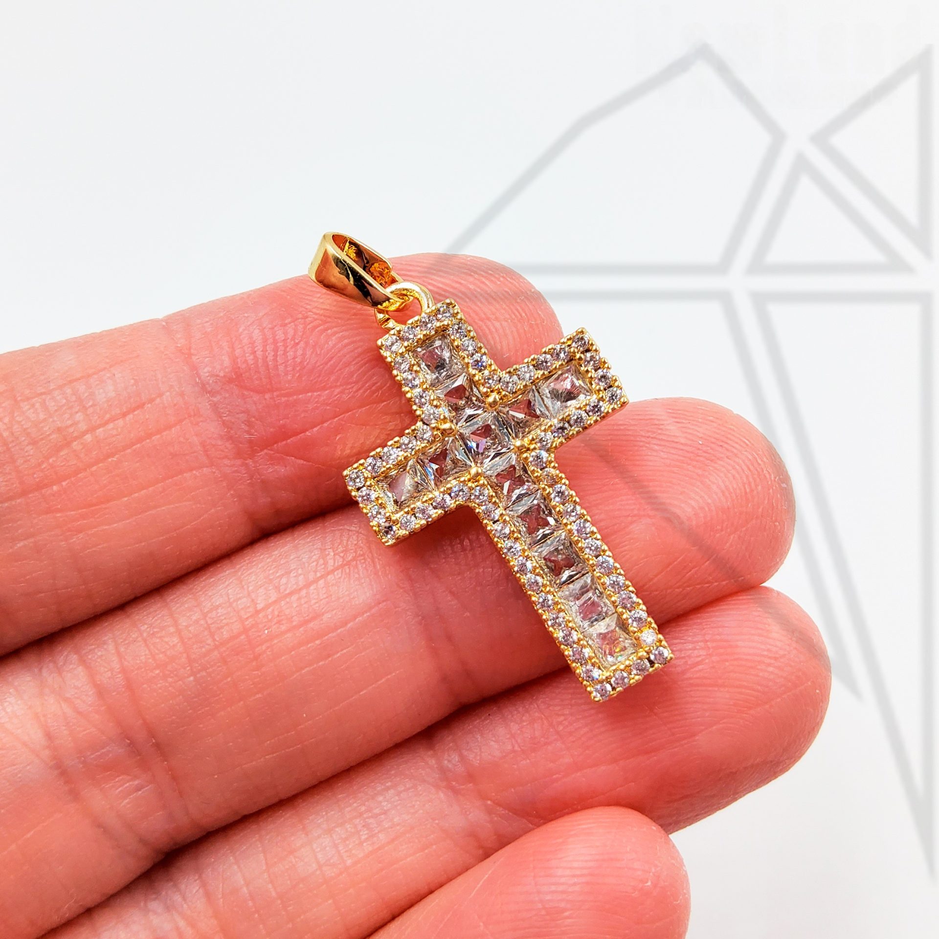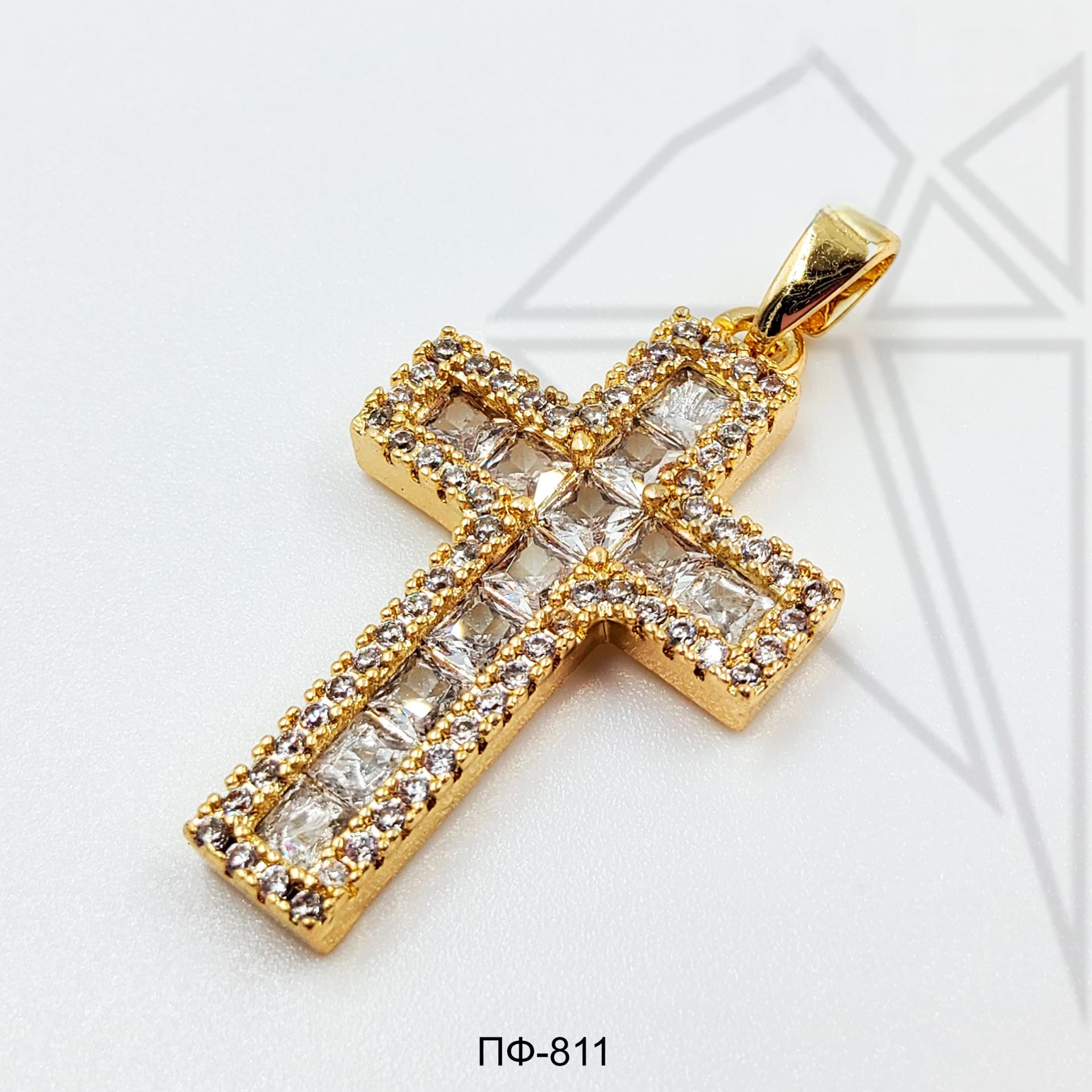 Подвеска в форме креста класса люкс с позолоченным покрытием (по латуни).