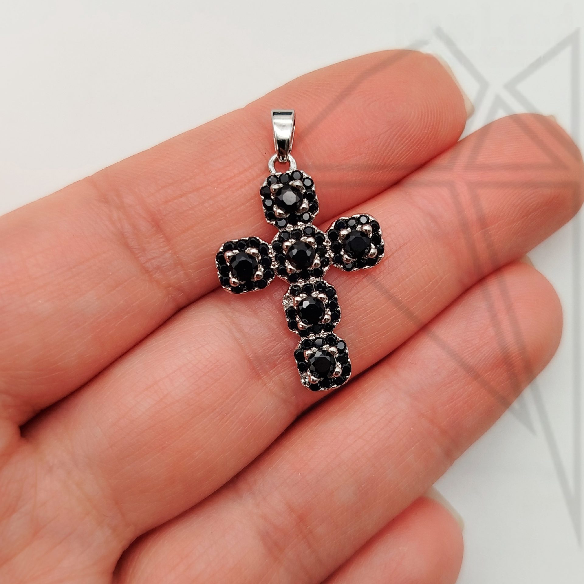 Будьте первым, кто оставил отзыв на «Подвеска крест с черными фианитами 26 мм (родий)»