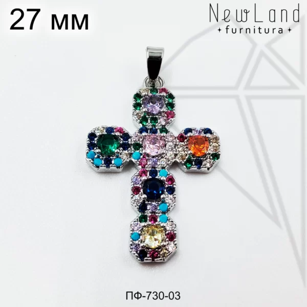 Подвеска в форме креста класса люкс с родированным покрытием (по латуни).