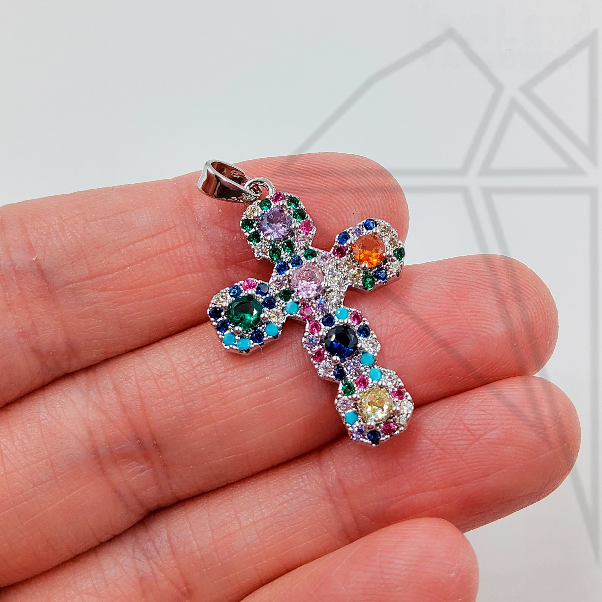 Подвеска в форме креста класса люкс с родированным покрытием (по латуни).
